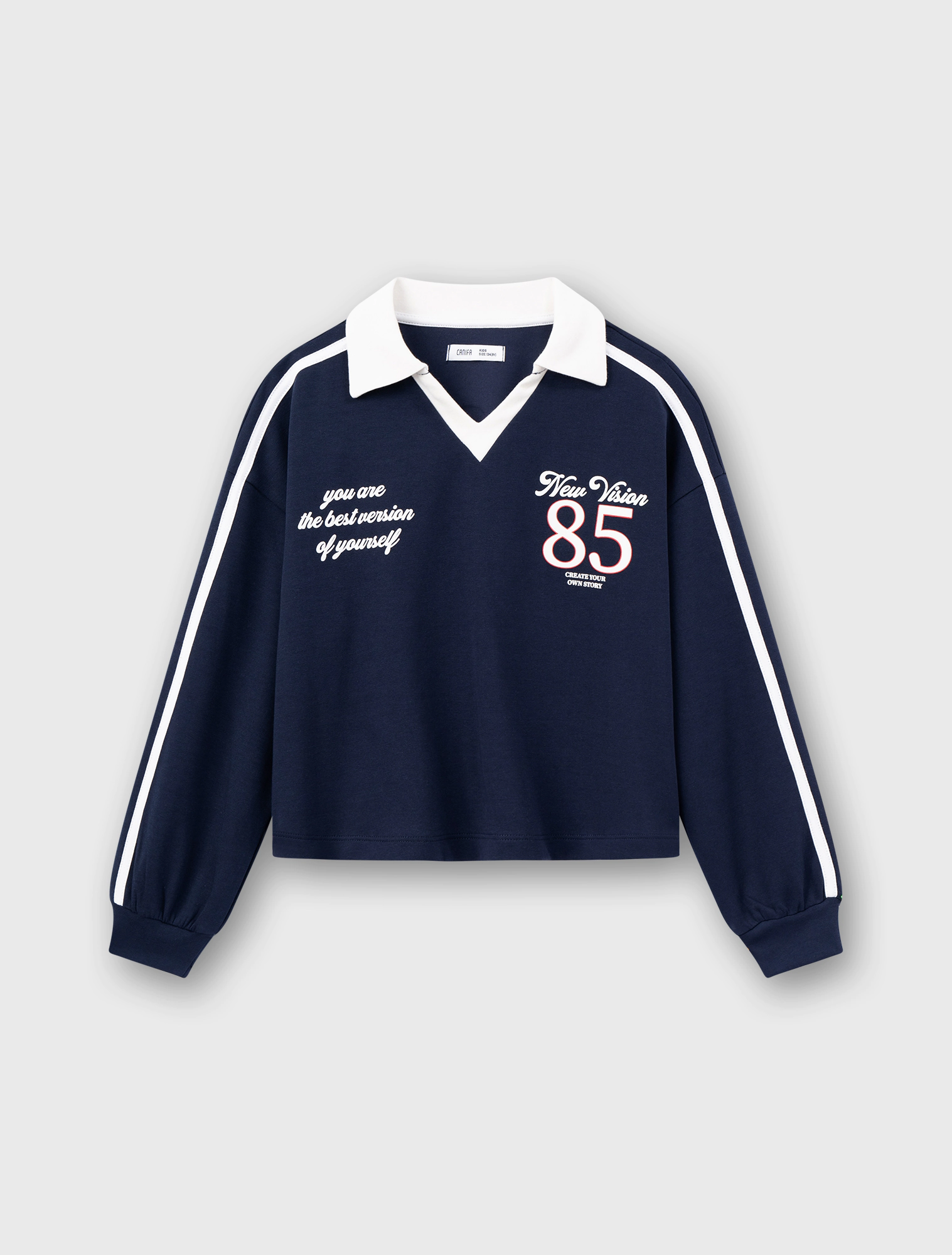 Áo polo dài tay bé gái. Dáng áo relax hiện đại. Cổ áo phối màu, sống tay đè dây dệt. Màu sắc và hình in cá tính, thời trang, phù hợp bé gái. Chất liệu Interlock Polyester pha Cotton mềm mại, giữ ấm tốt.