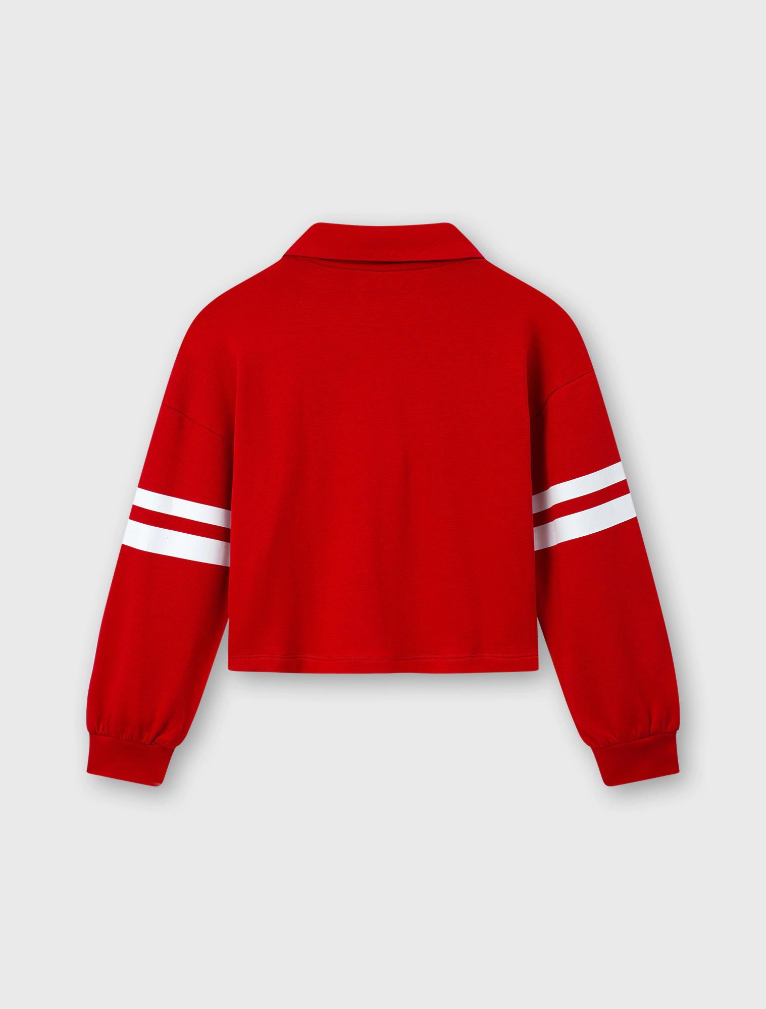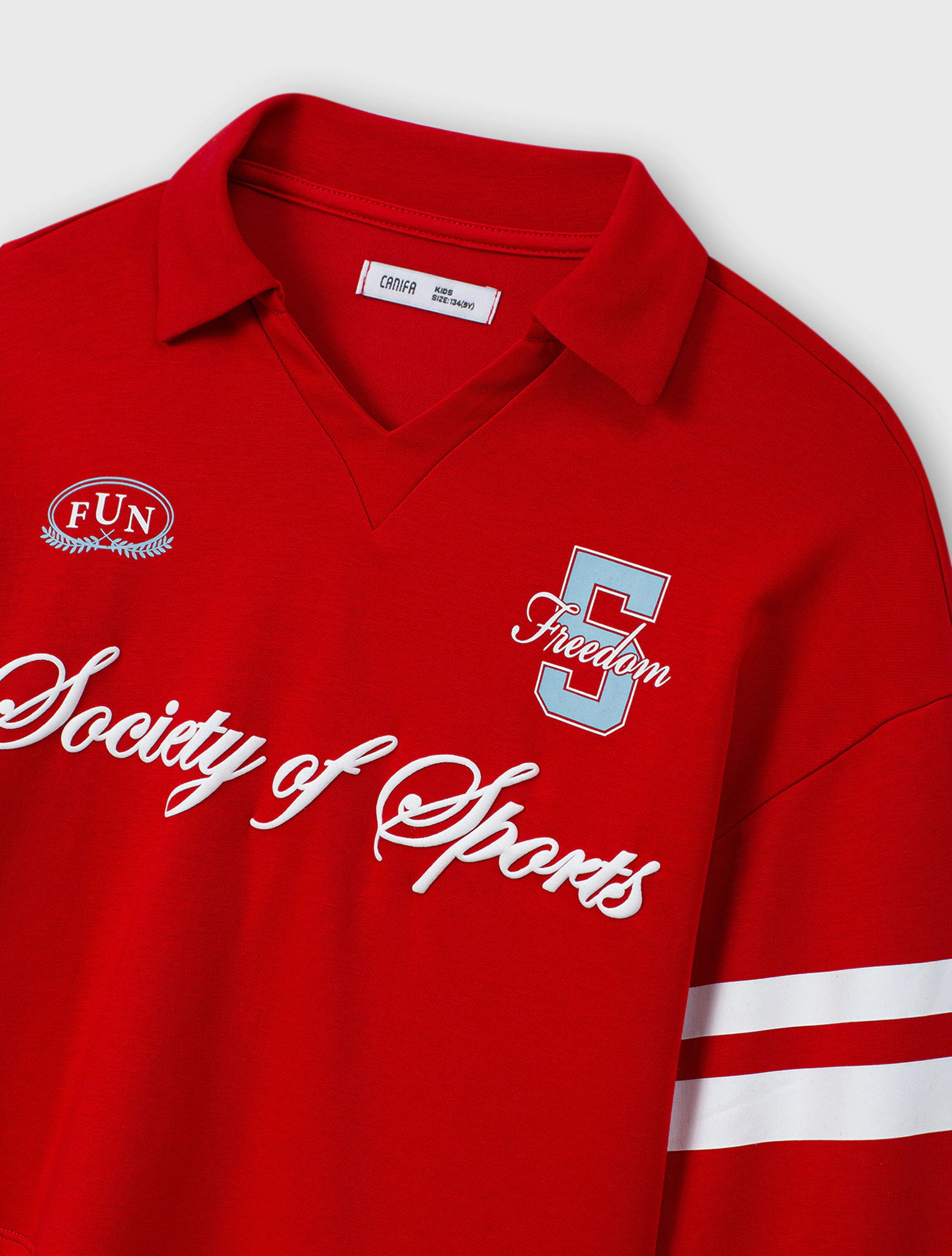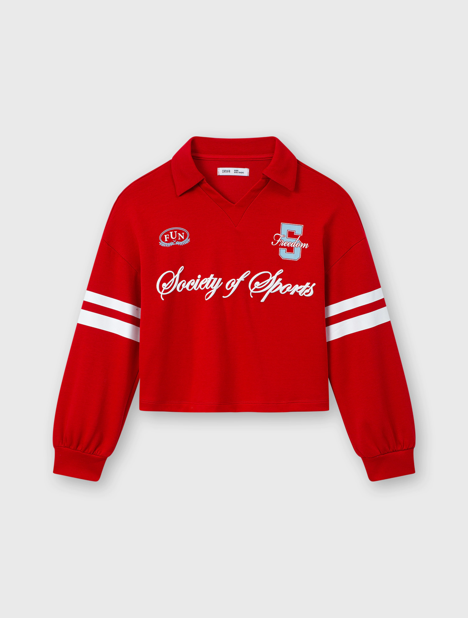 Áo polo dài tay bé gái. Dáng áo relax hiện đại. HÌnh in đơn sắc cá tính. Chất liệu Interlock Polyester pha Cotton mềm mại, giữ ấm tốt.