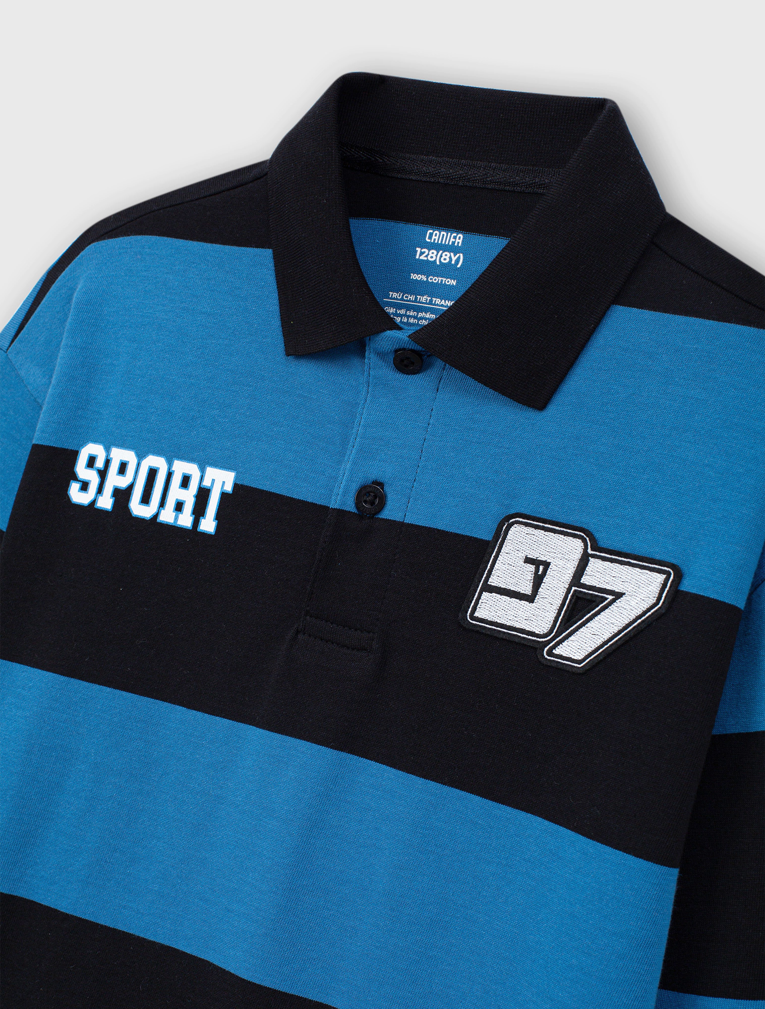 Áo polo kẻ bé trai, Chất liệu cotton kẻ mềm mại thoải mái, hình in năng động khỏe khoắn cho trẻ sử dụng. Màu sắc
