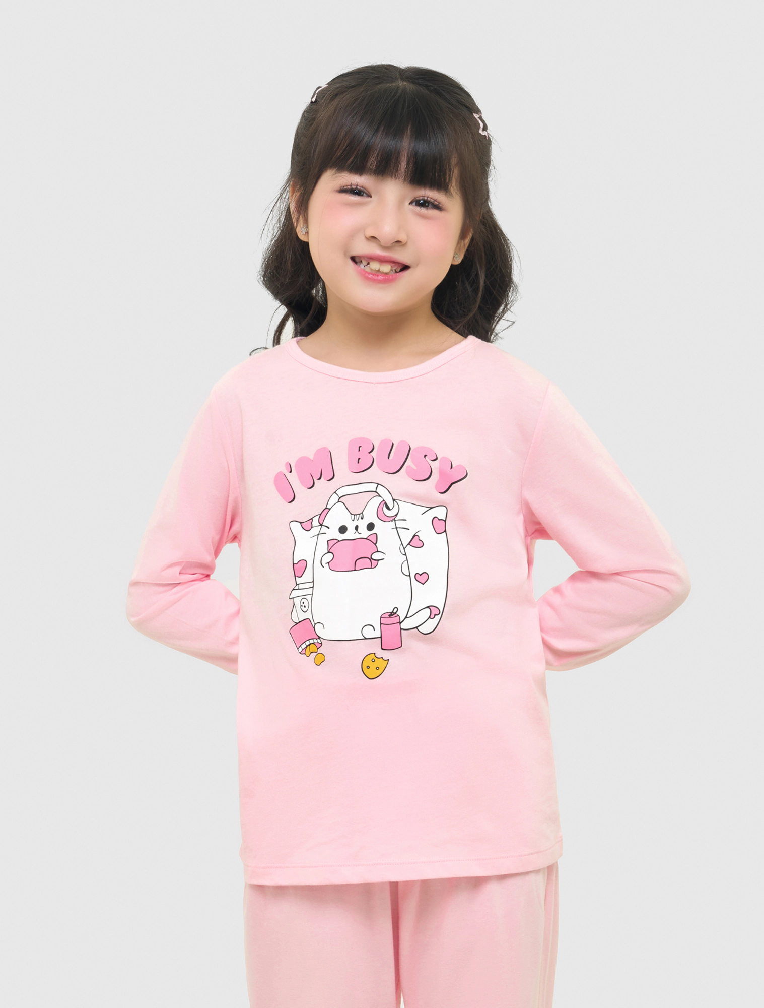 Bộ mặc nhà bé gái có hình in | Oeko-Tex, Phom dáng cơ bản dễ mặc. Màu sắc tươi sáng, hình in dễ thương phù hợp bé gái. Chất liệu cotton pha mềm mại, dễ chịu khi mặc