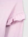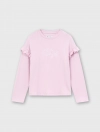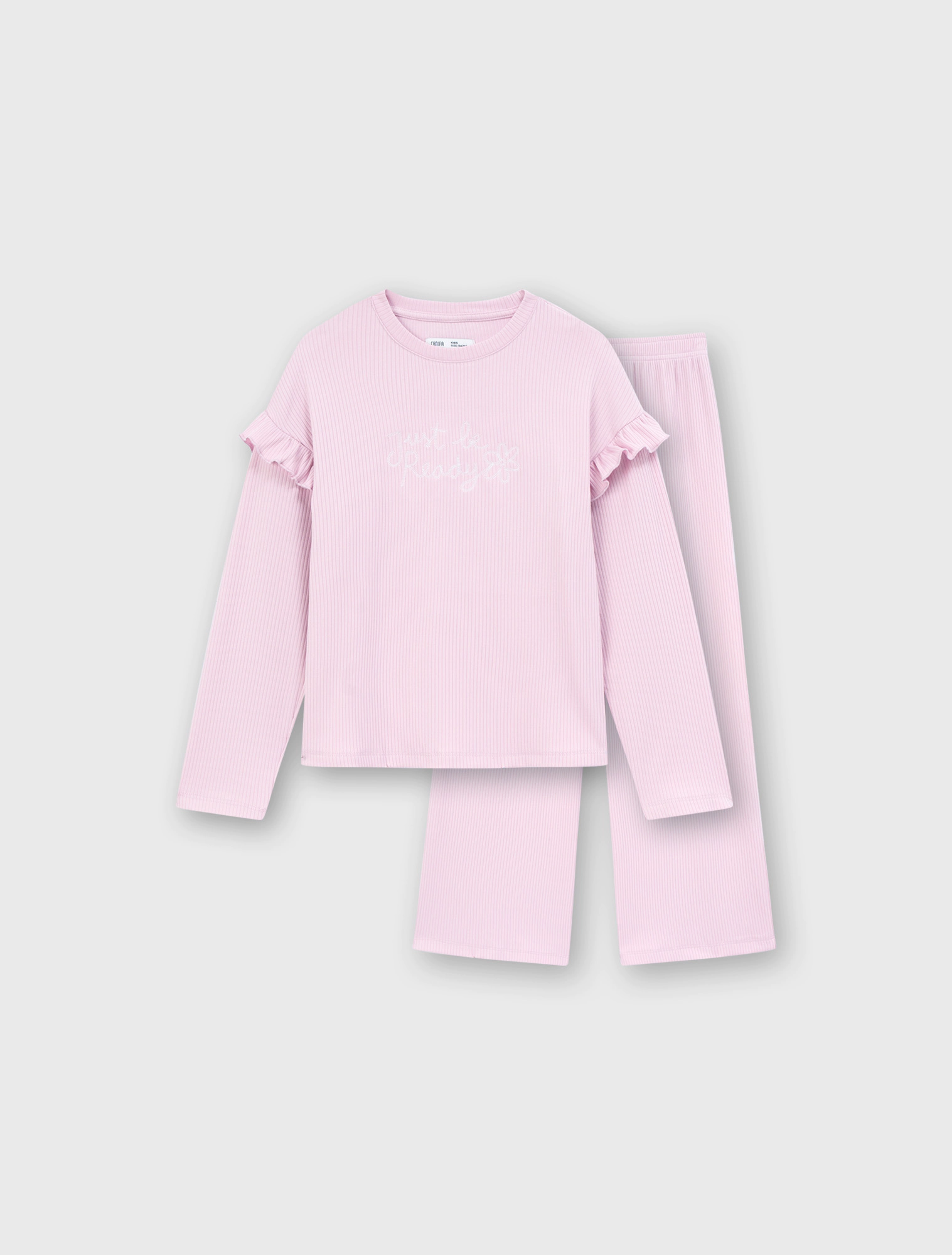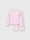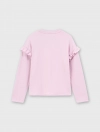 Bộ mặc nhà bé gái. Áo dài tay cổ tròn kết hợp quần suông thời trang. Phom dáng suông thoải mái, tay áo phối bèo điệu đà phù hợp bé gái. Màu sắc tươi sáng, đồ họa dễ thương. Chất liệu rib Polyester pha Spandex mềm mại, co giãn tốt, phù hợp các hoạt động thư giãn.