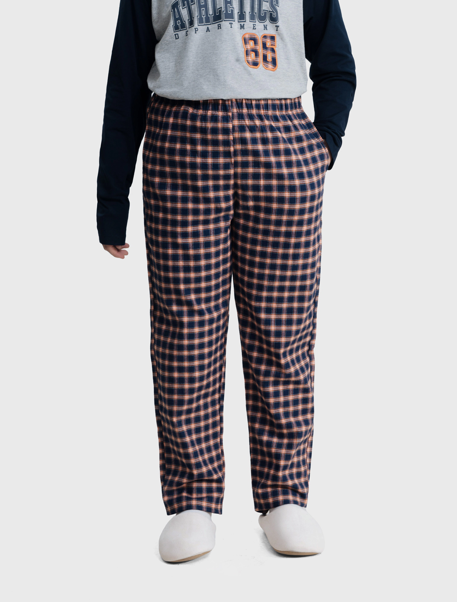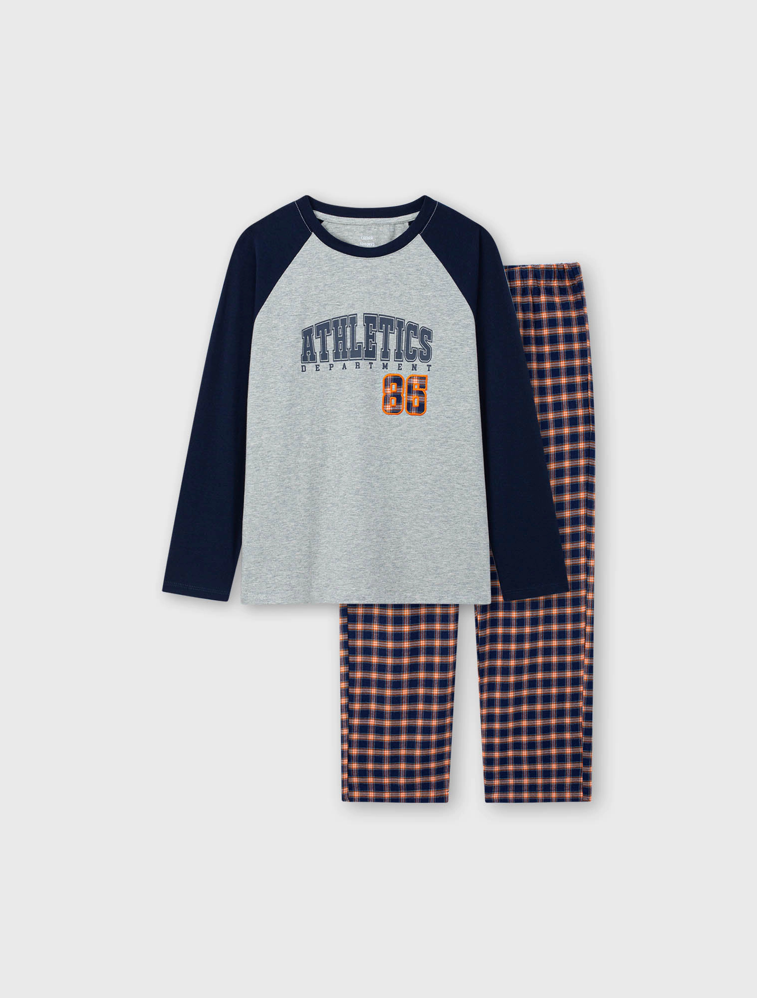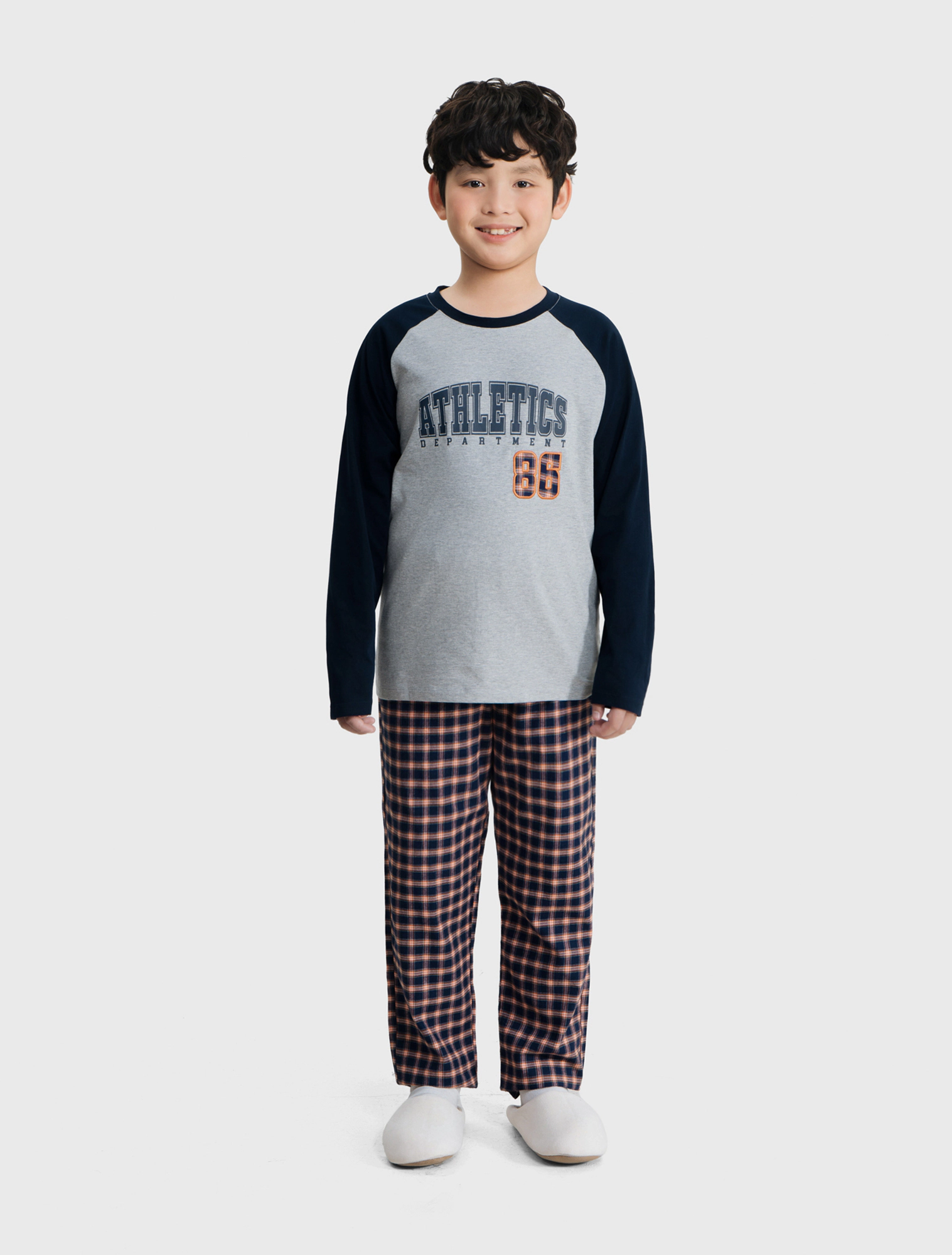 Bộ mặc nhà bé trai có hình in, áo cotton mix màu quần dệt thoi kẻ, phom dáng cơ bản dễ mặc hình in phù hợp với sở thích của trẻ nhỏ.