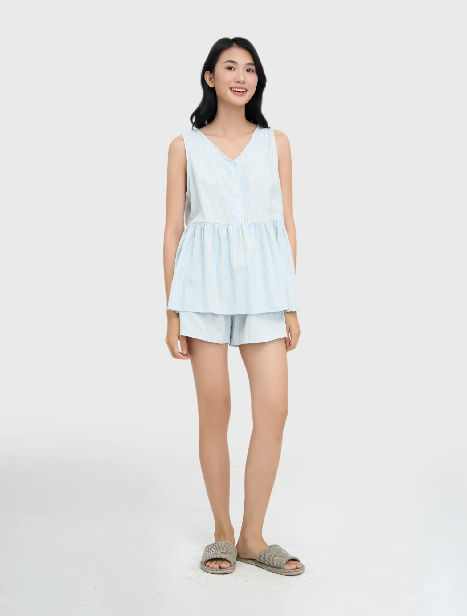 Set bộ mặc nhà nữ vải dệt kẻ màu sắc tươi sáng và kiểu dáng thoải mái rất phù hợp với những lựa chọn cho ngày hè.
