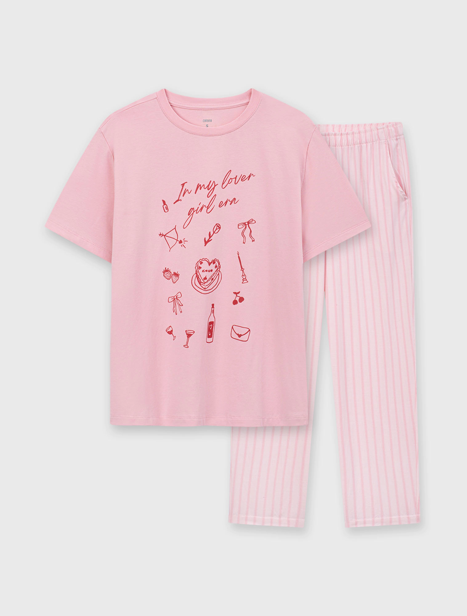 Bộ mặc nhà nữ có hình in, kết hợp chất liệu và kiểu dáng là sự lựa chọn tối ưu với thời tiết giao mùa.