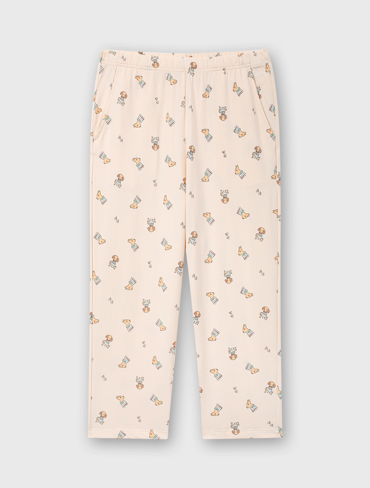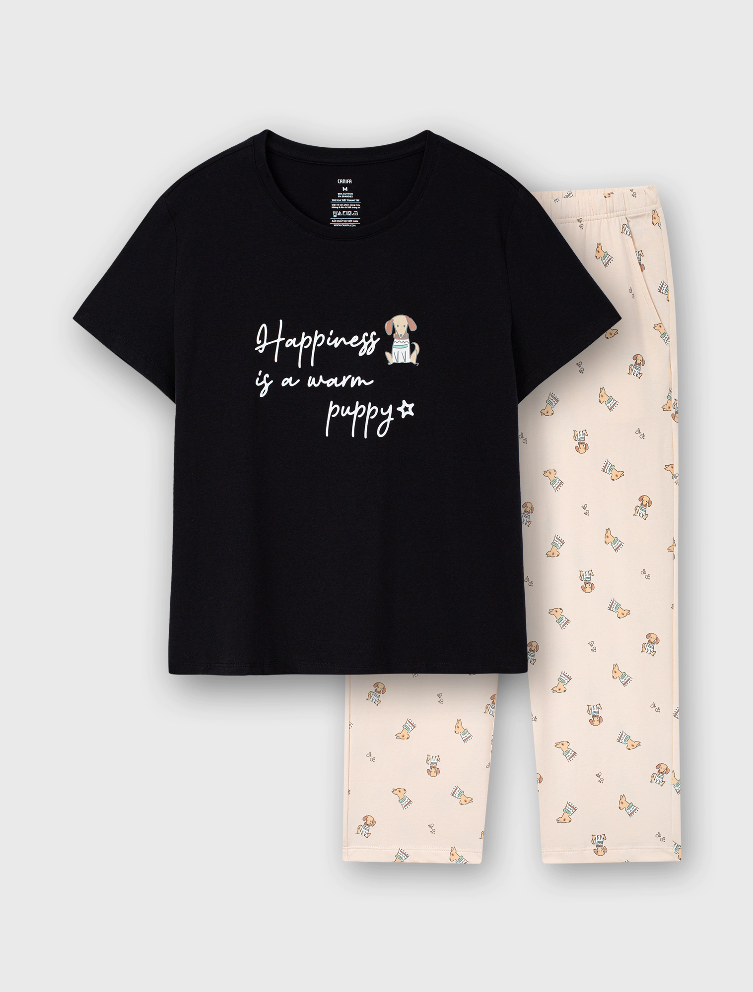 Bộ mặc nhà nữ có hình in, dáng lửng, với áo cộc tay và quần lửng qua gối, chất liệu vải cotton có co dãn tạo sự thoải mái tối đa khi sử dụng.