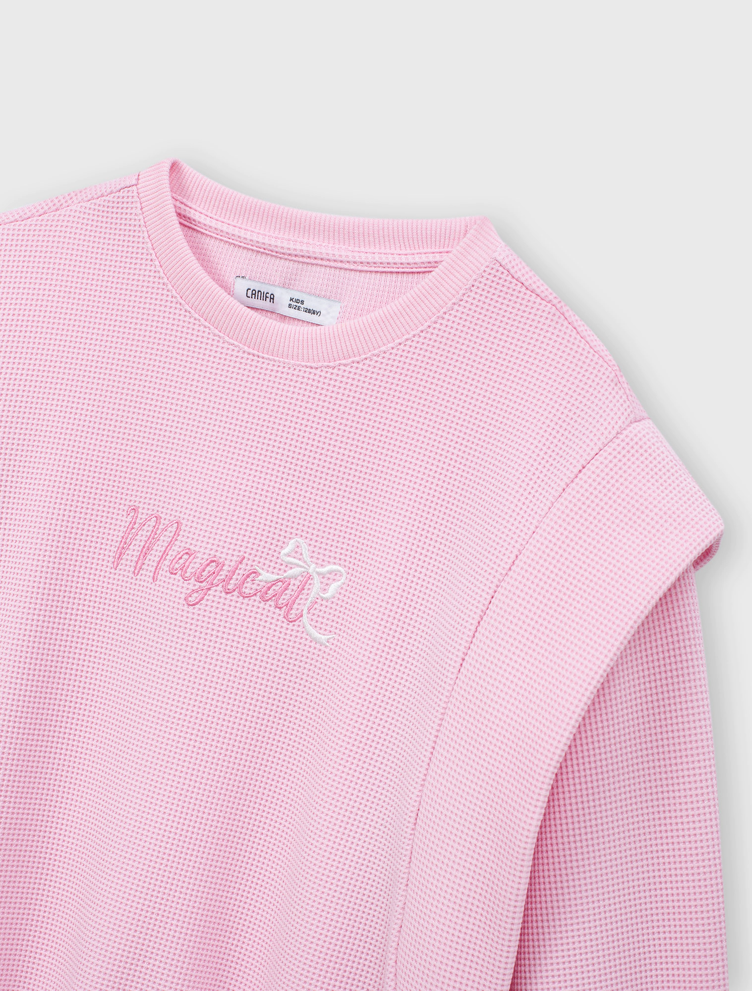 Bộ quần áo bé gái vải waffle có hình in