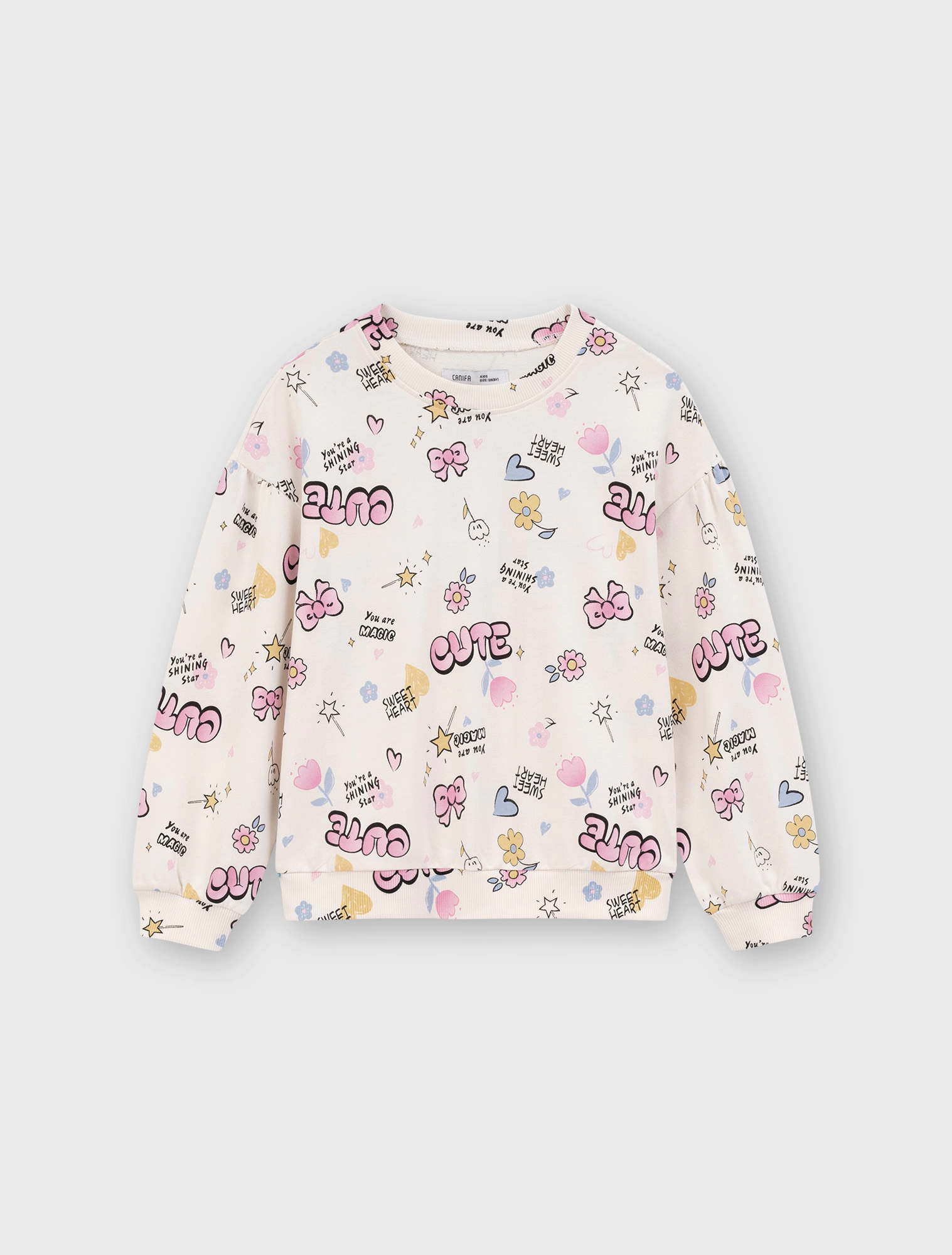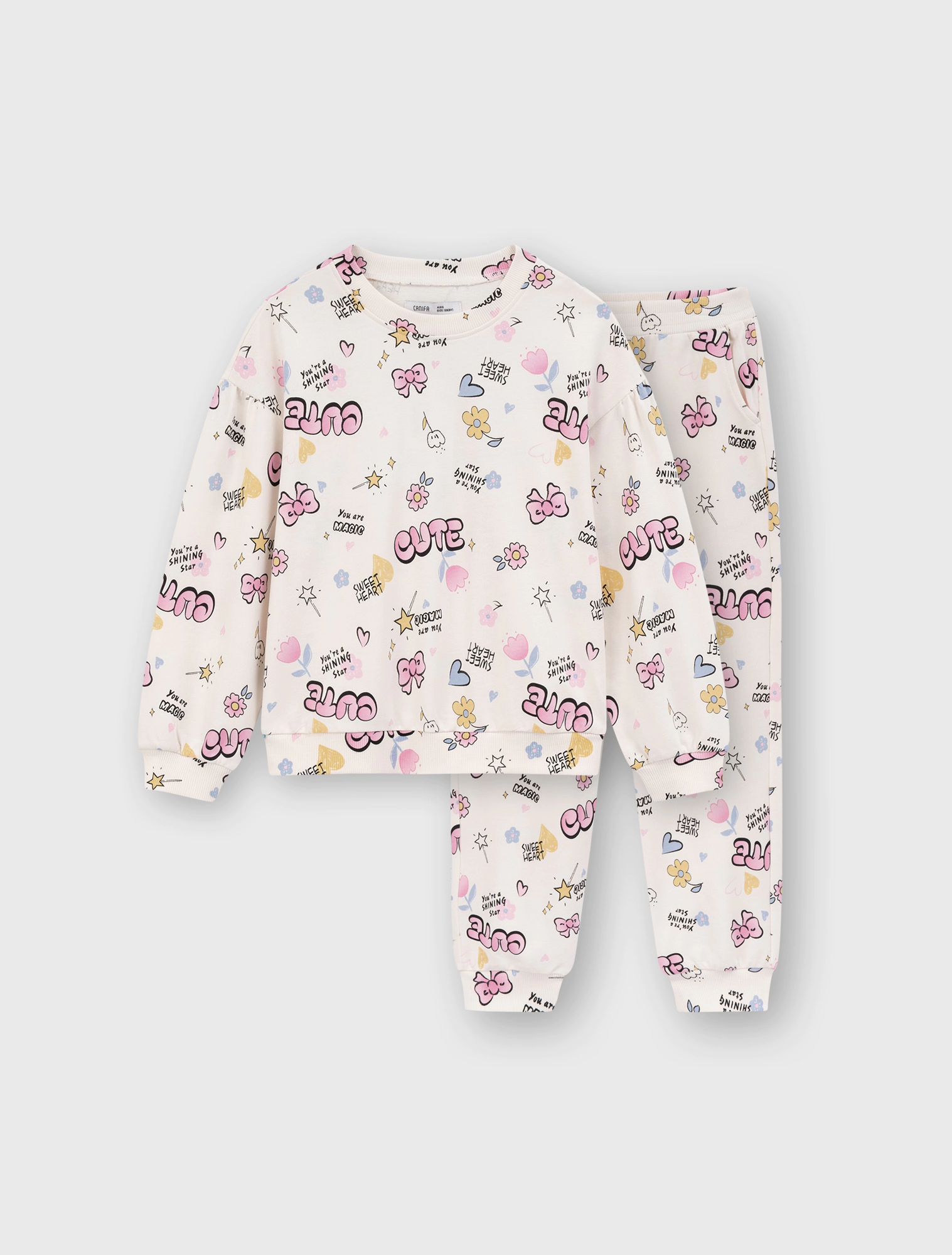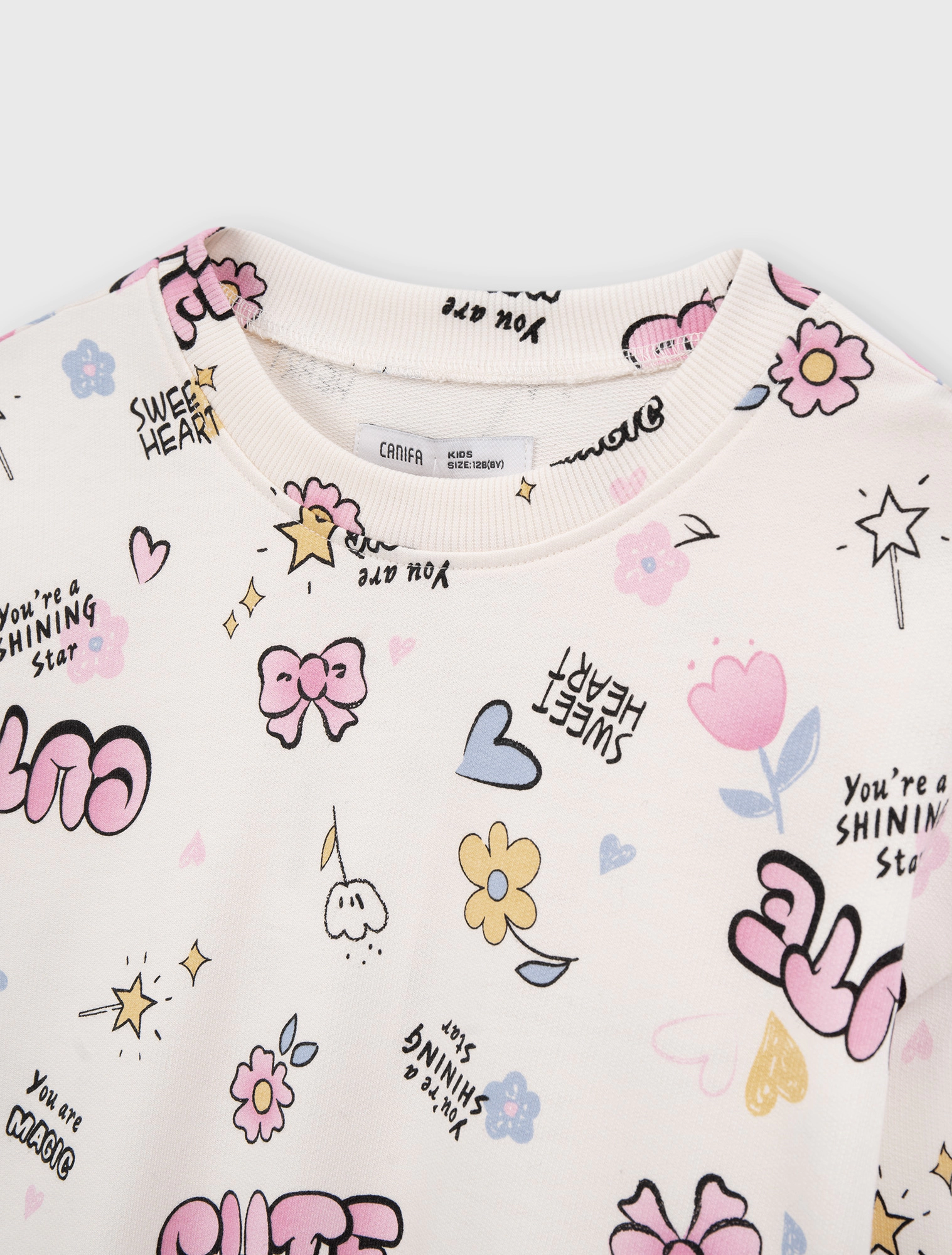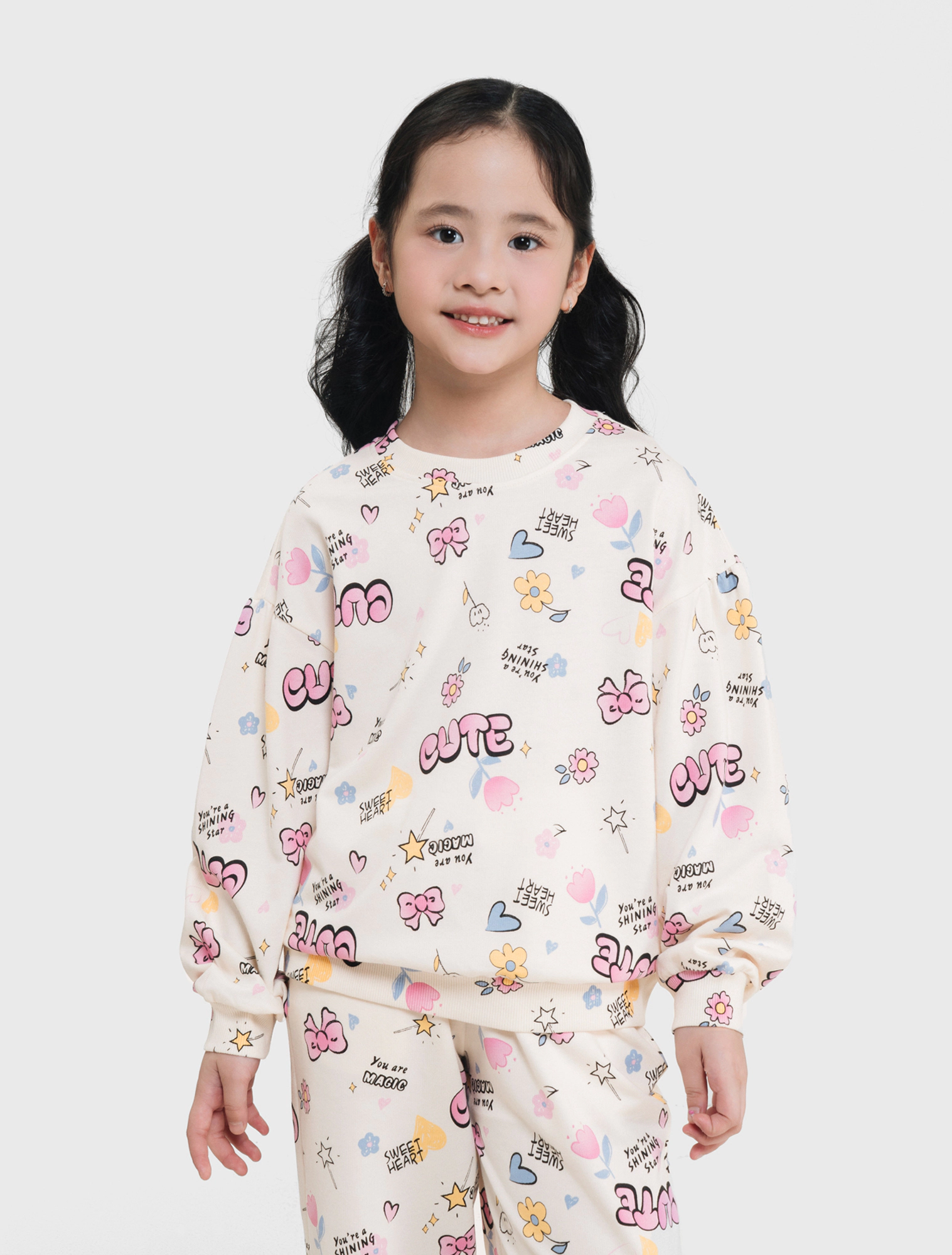 Bộ quần áo bé gái. Áo dài tay nhún phồng nhẹ kết hợp quần bo gấu thời trang. Phom dáng cơ bản, cổ tròn dễ mặc. Màu sắc tươi sáng, họa tiết hình in đáng yêu phù hợp bé gái. Chất liệu Cotton pha mềm mại, giữ ấm tốt.