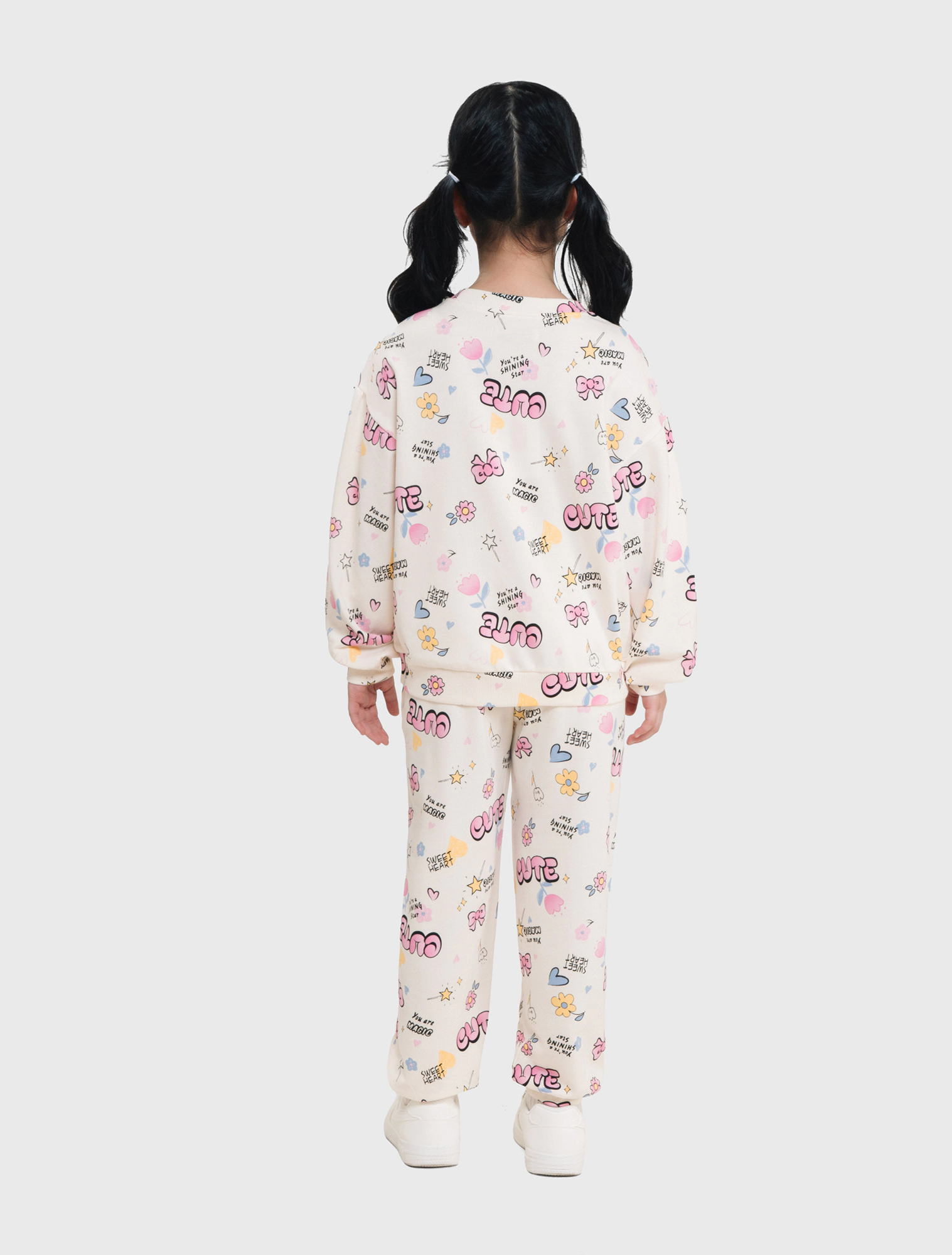 Bộ quần áo nỉ bé gái có họa tiết