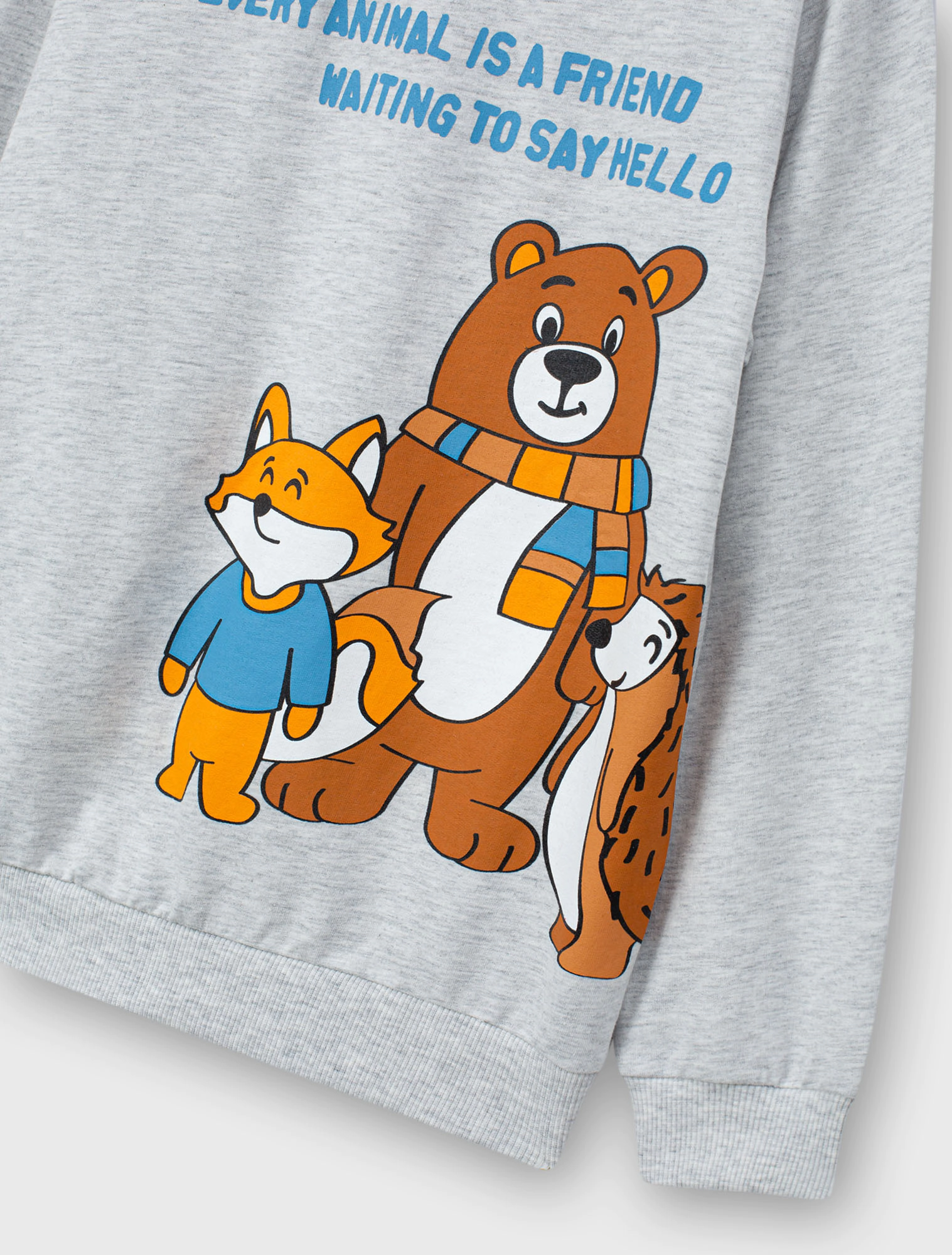 Bộ quần áo bé trai, chất liệu vảy cá, hình in ngộ nghĩnh đáng yêu phù hợp cho lứa tuổi nhỏ.