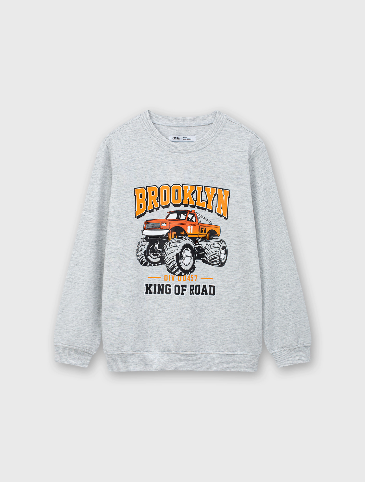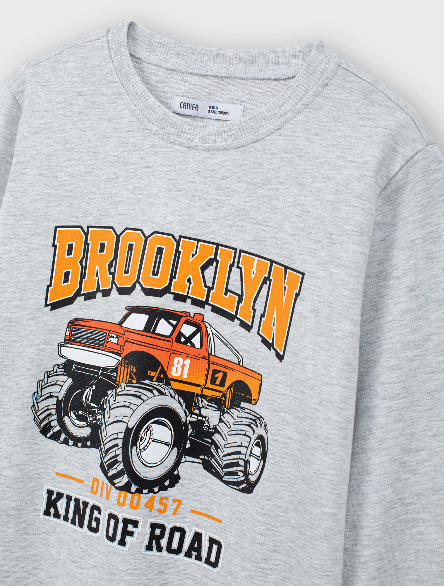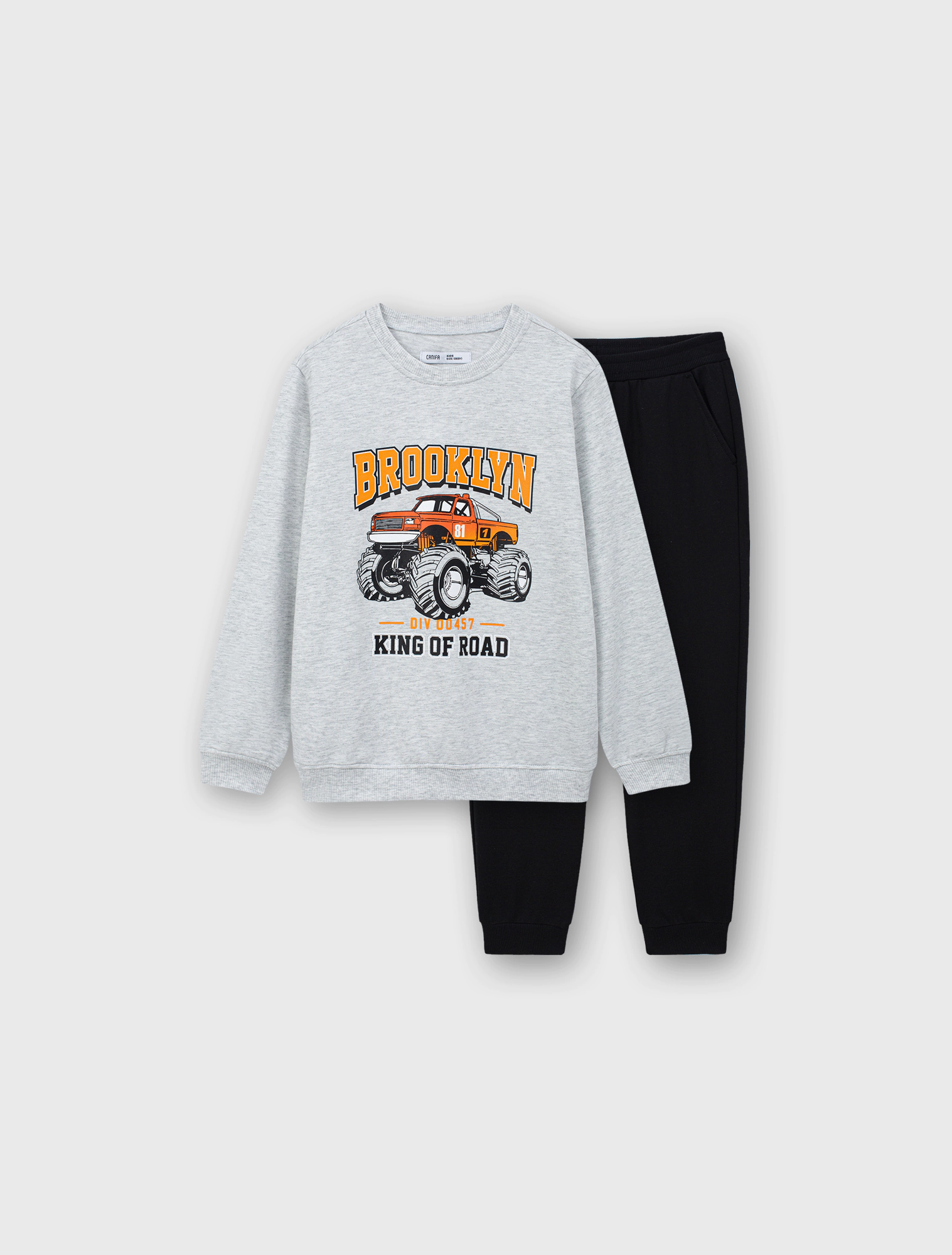 Bộ quần áo nỉ bé trai, chất liệu cotton USA, mix màu hài hòa, hình in nổi bật.