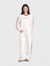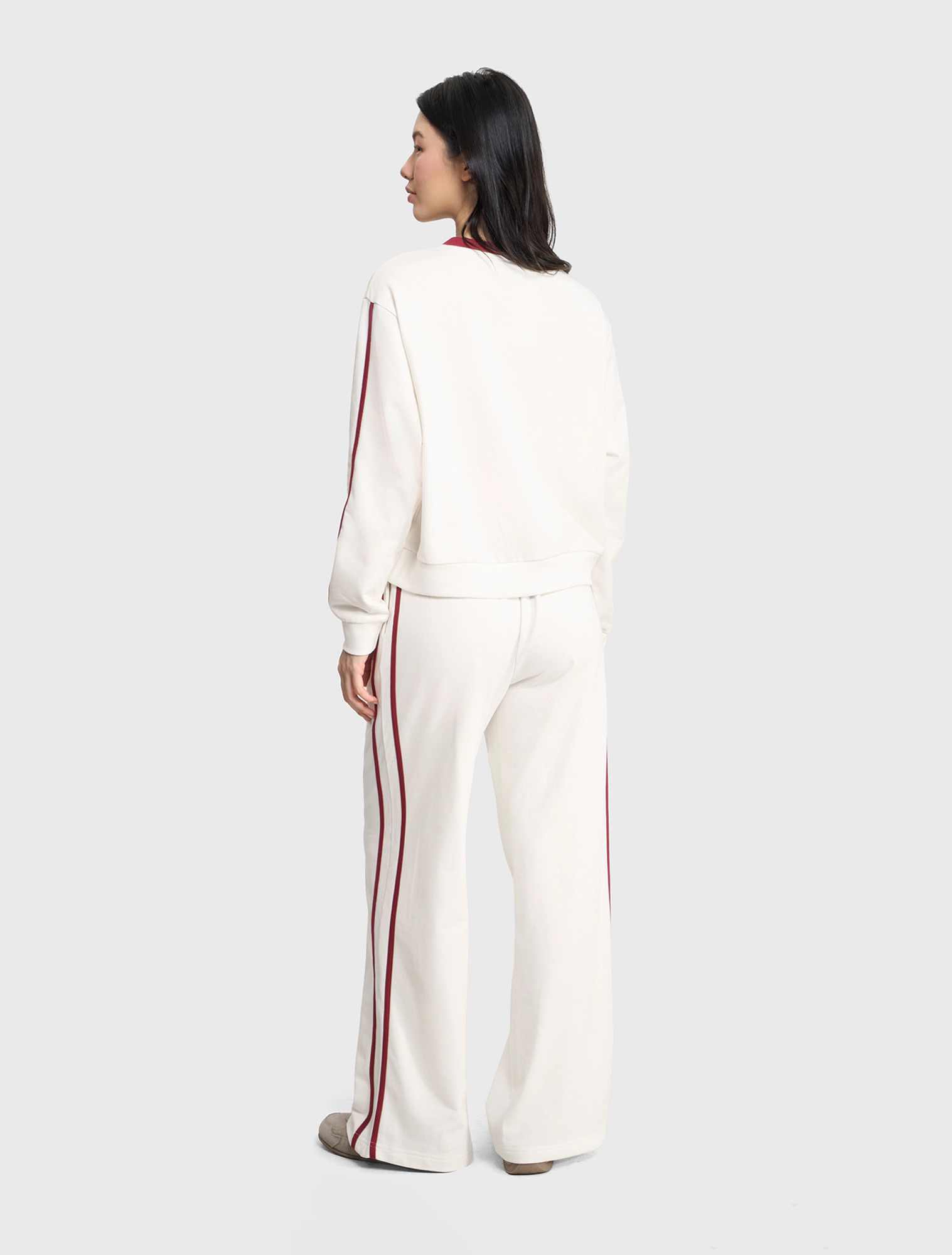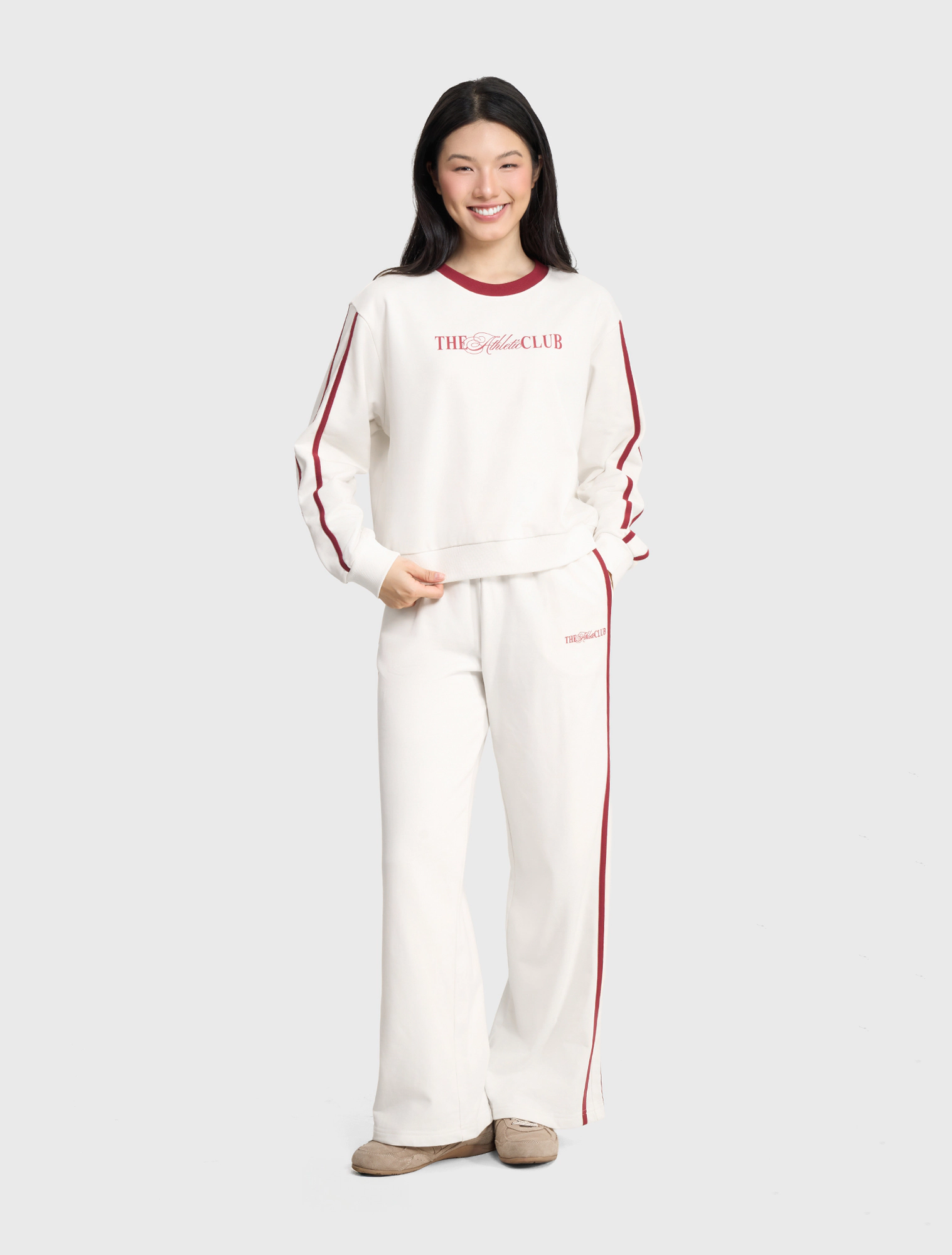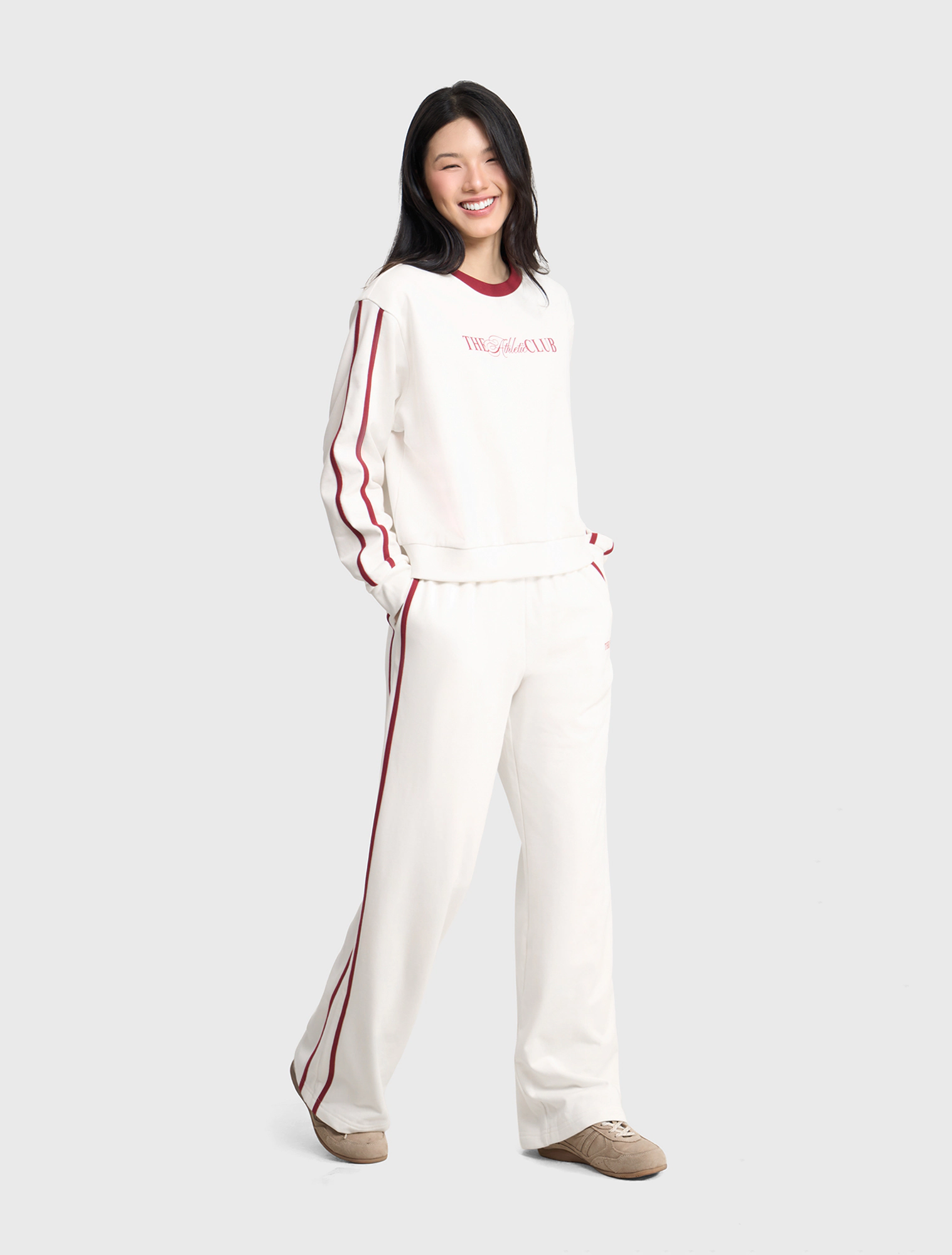 Bộ nỉ nữ dáng suông, chất liệu dệt vòng lông ấm áp, đứng phom. Chi tiết phối dọc 2 bên sườn cùng với hình đồ hoạ nhỏ tạo điểm nhấn và mang phong cách trẻ trung và năng động.
