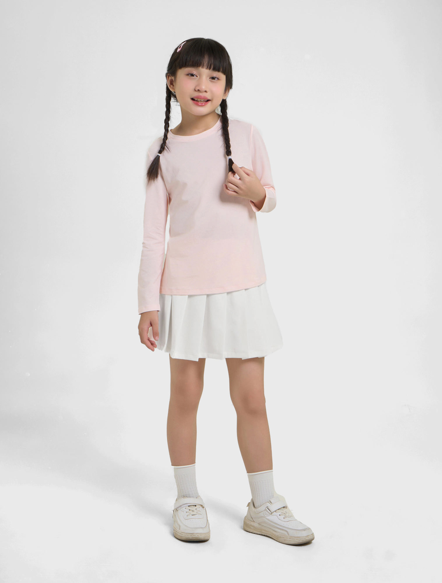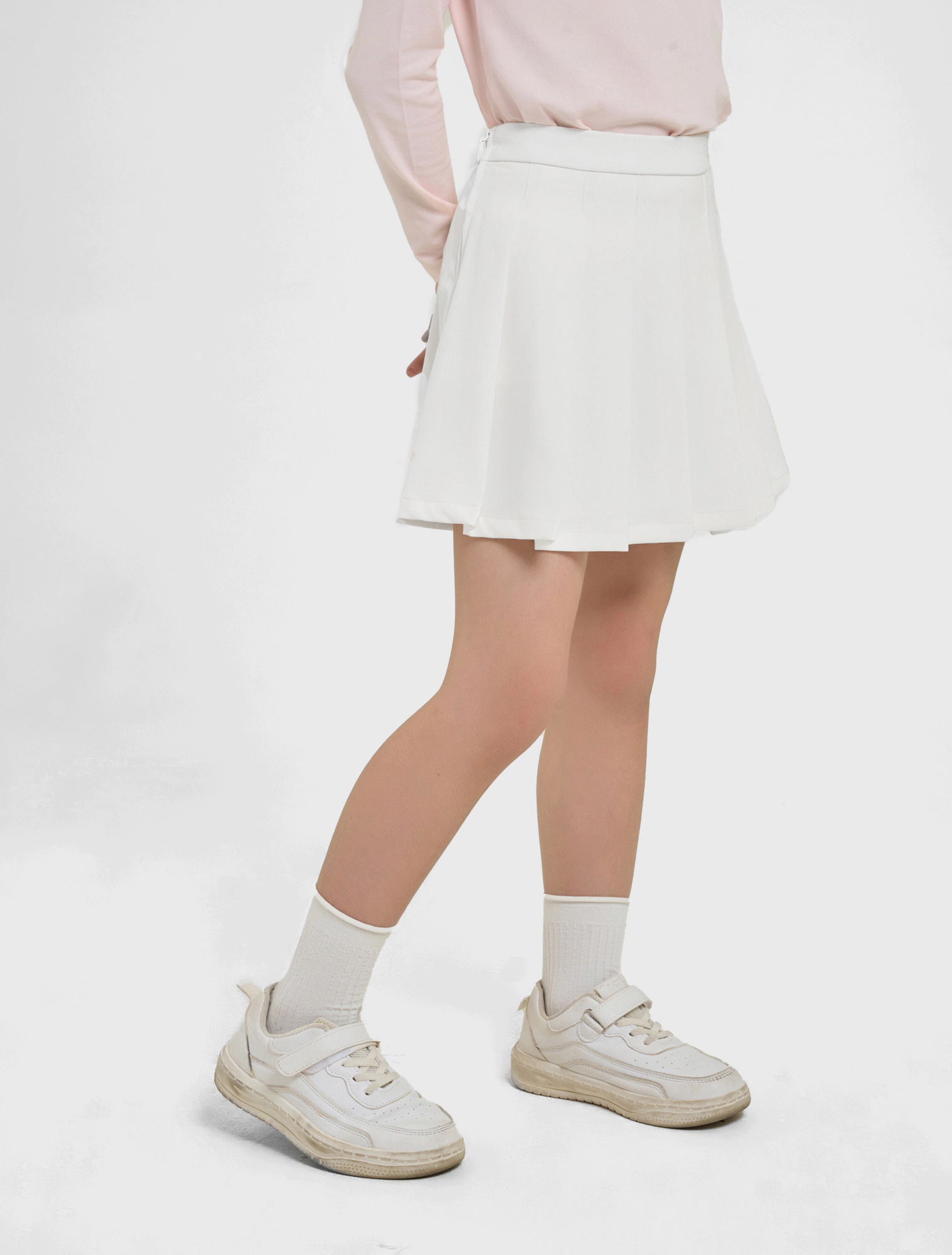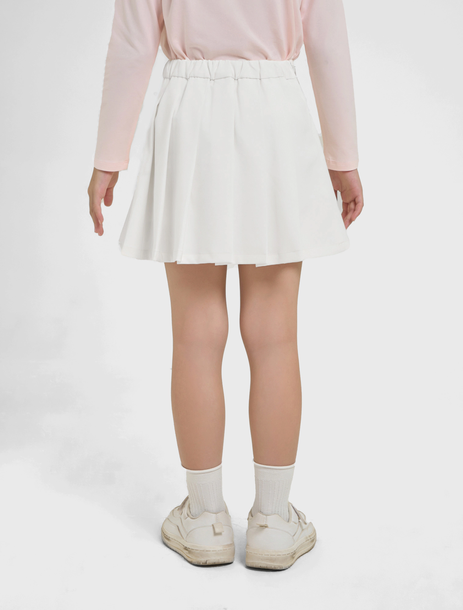 Chân váy ngắn xếp ly dáng xòe, có lót quần bên trong thuận tiện cho các bé vận động. Chất liệu mềm mại, mịn mát, dễ dàng kết hợp với nhiều loại trang phục.
