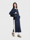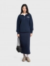 Chân váy nỉ nữ dáng suông, chất liệu cào bông giúp giữ ấm, chi tiết phối 2 bên tạo sự mới mẻ và trẻ trung cho sản phẩm.