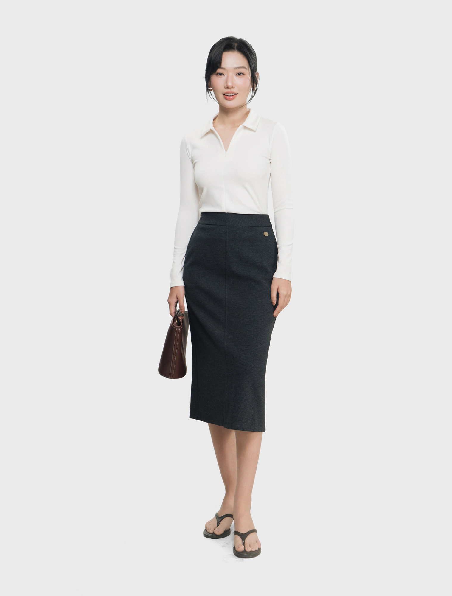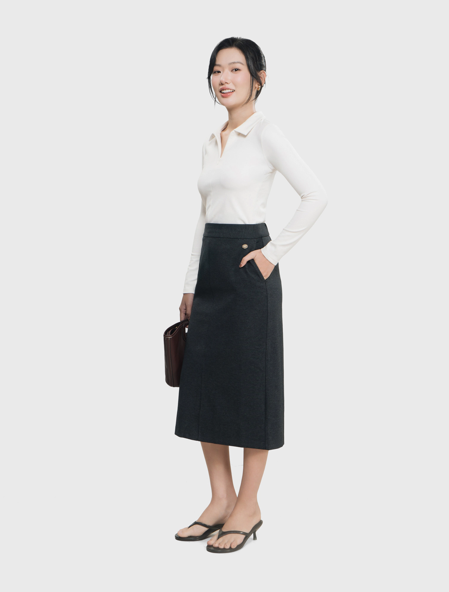 Chân váy nữ dáng dài, suông vừa. Chất liệu co dãn, mềm mại. Hoàn cảnh sử dụng linh hoạt.