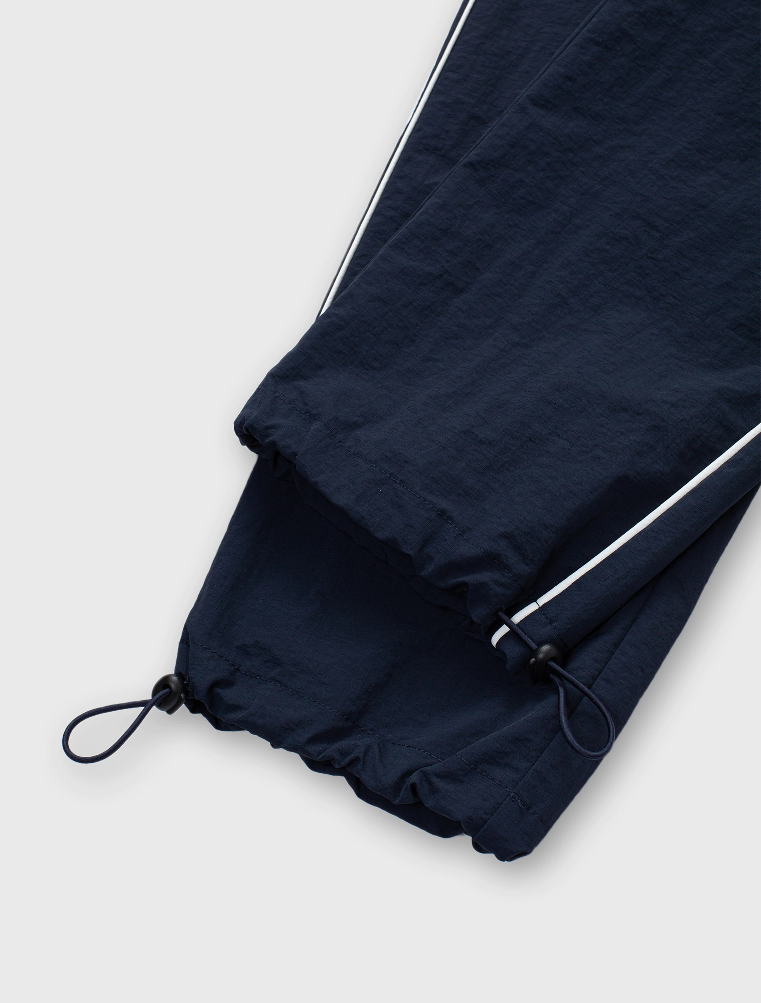 Quần gió jogger bé trai cạp chun. Túi phía trước và gấu rút chun. Chi tiết thêu ở ống quần, lé màu dọc quần.
