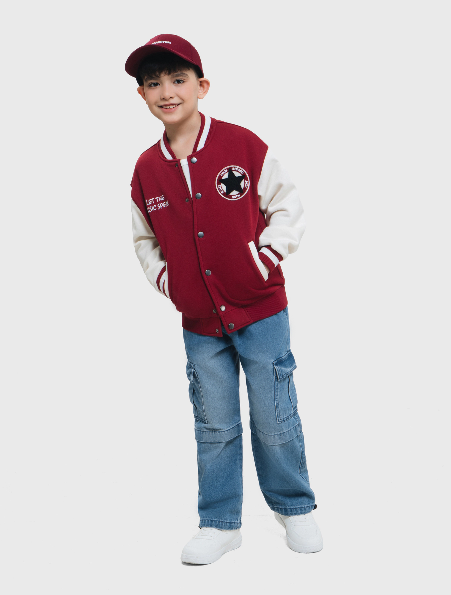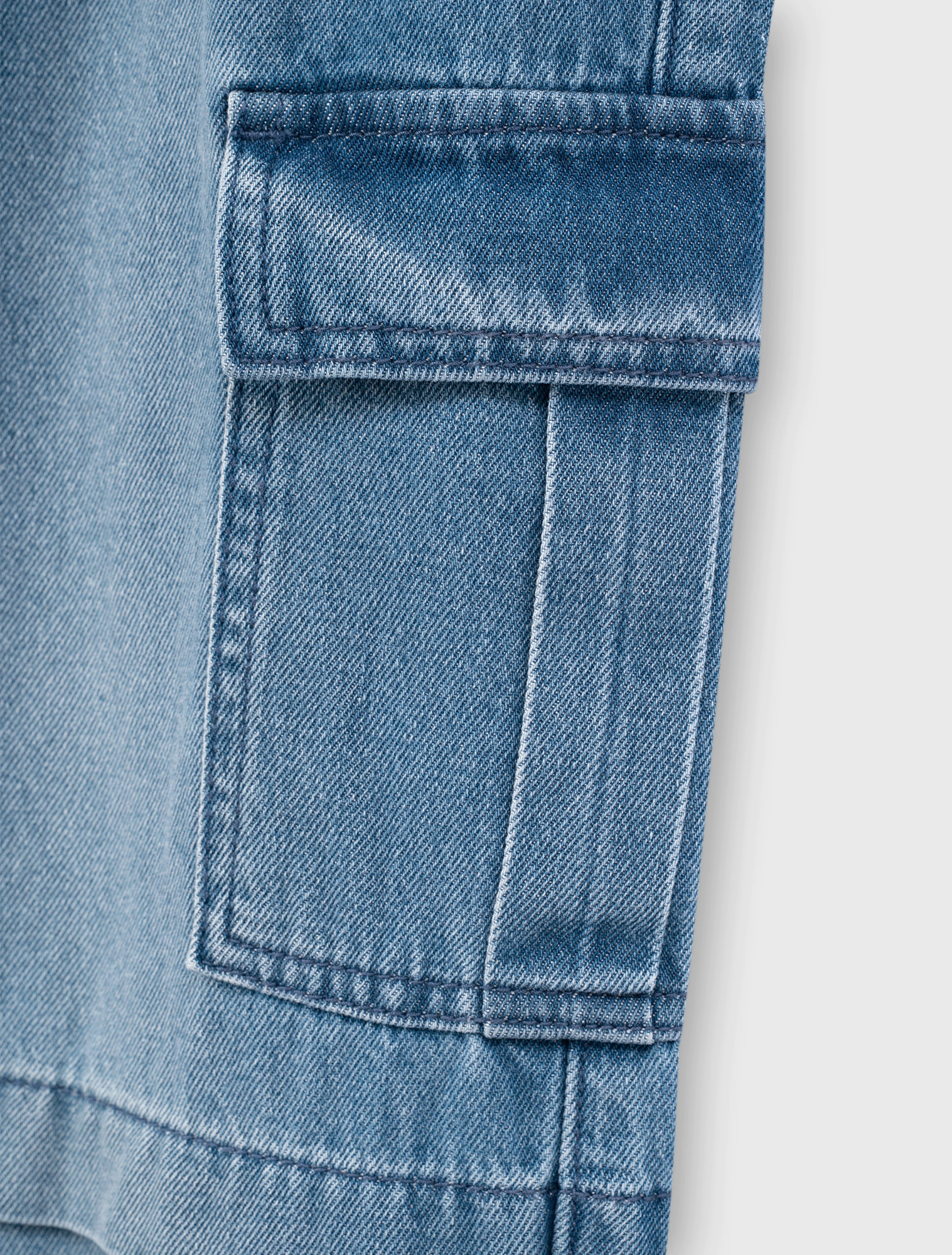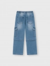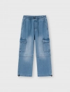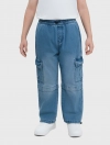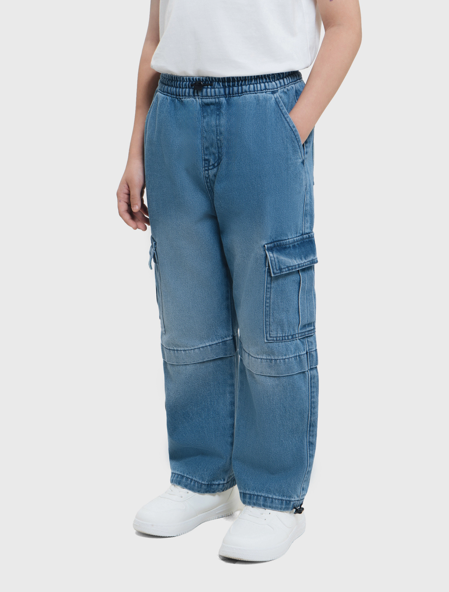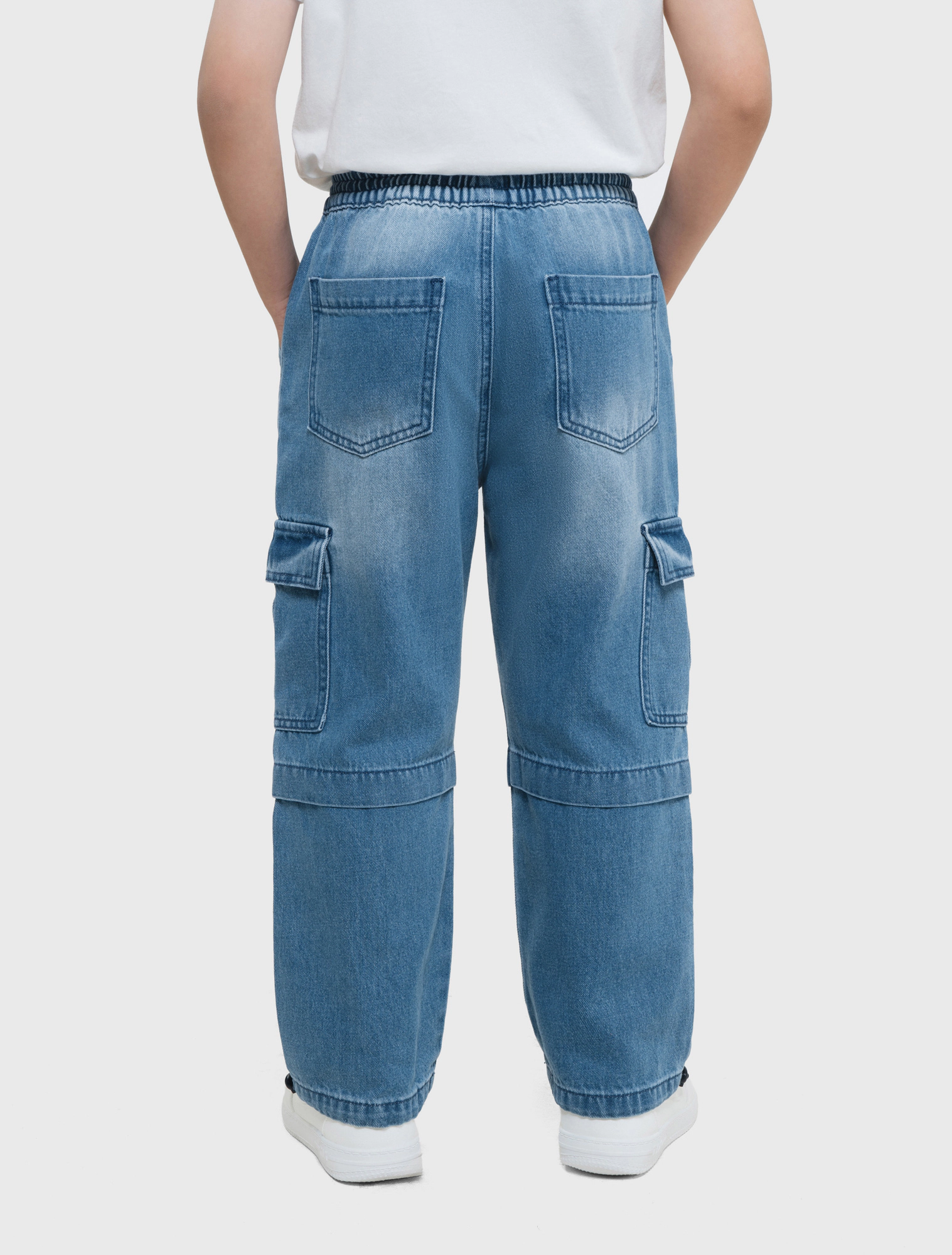 Quần jeans bé trai cotton dáng suông, cạp bo chun bên trong, có rút chun cạp và gấu tiện lợi.