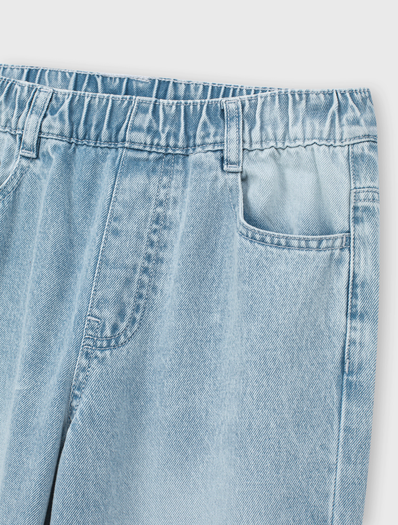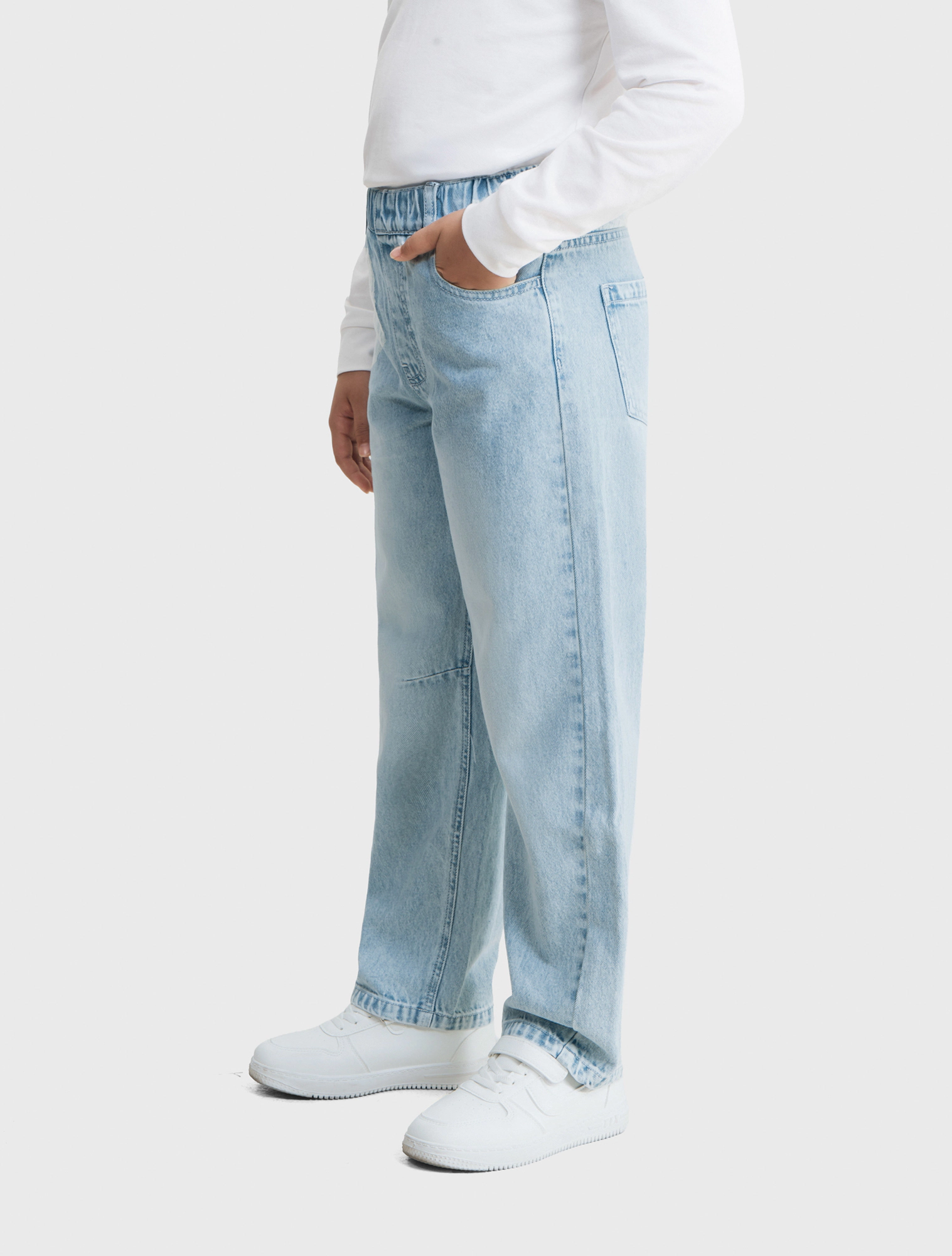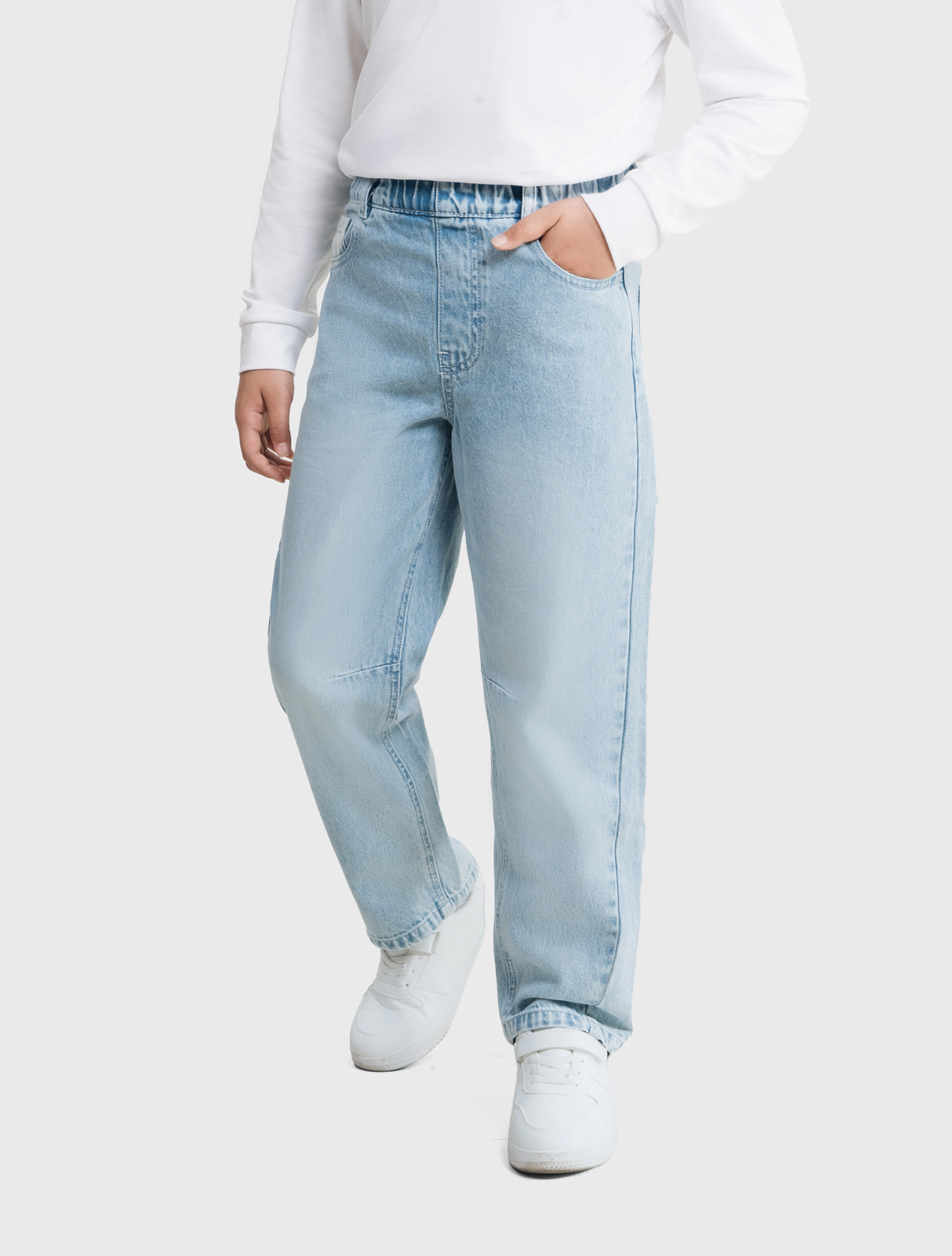 Quần jeans bé trai cotton dáng suông với thiết kể cạp bo thun bên trong, cài khuy phía trước, có túi phía trước và túi vuông phía sau.