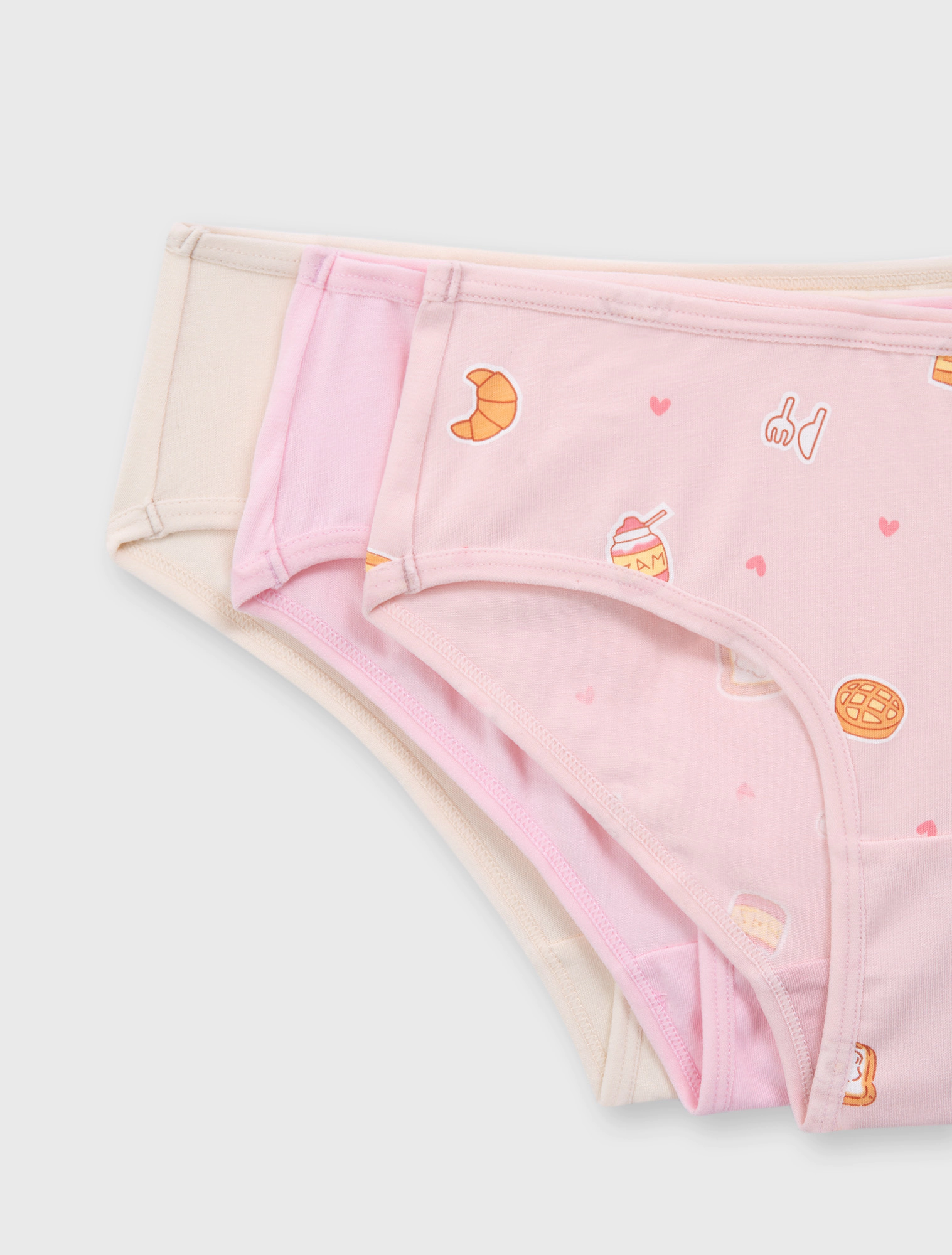 Pack 3 quần lót bé gái thiết kế dáng brief che phủ rộng, cùng chất liệu Cotton Spandex mềm mại và co giãn, giúp bé thoải mái vận động khám phá hàng ngày
