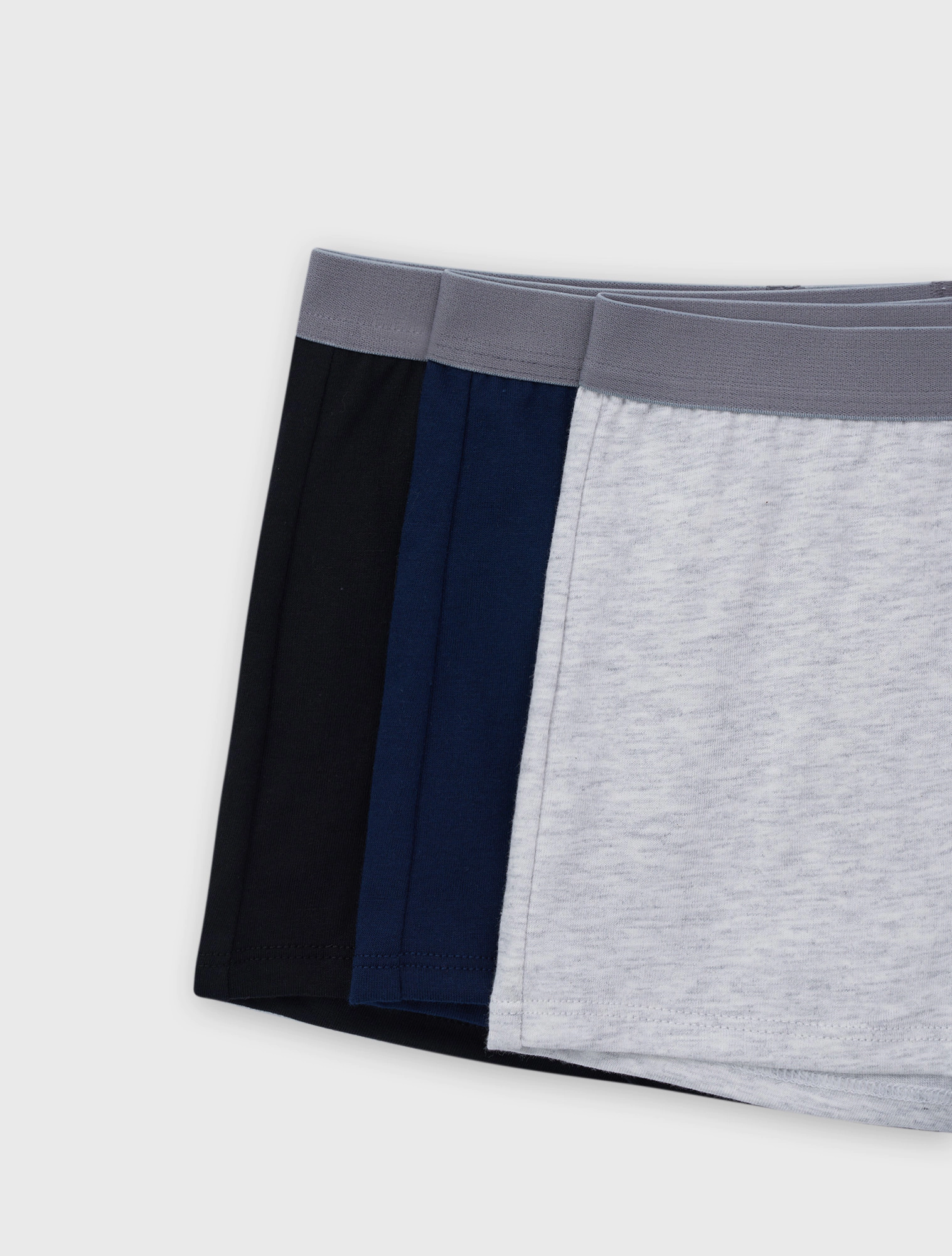 Pack 3 quần lót dáng trunk bé trai thiết kế che phủ rộng, chất liệu cotton spandex mềm mại và co giãn giúp bé thoải mái vận động khám phá hàng ngày.