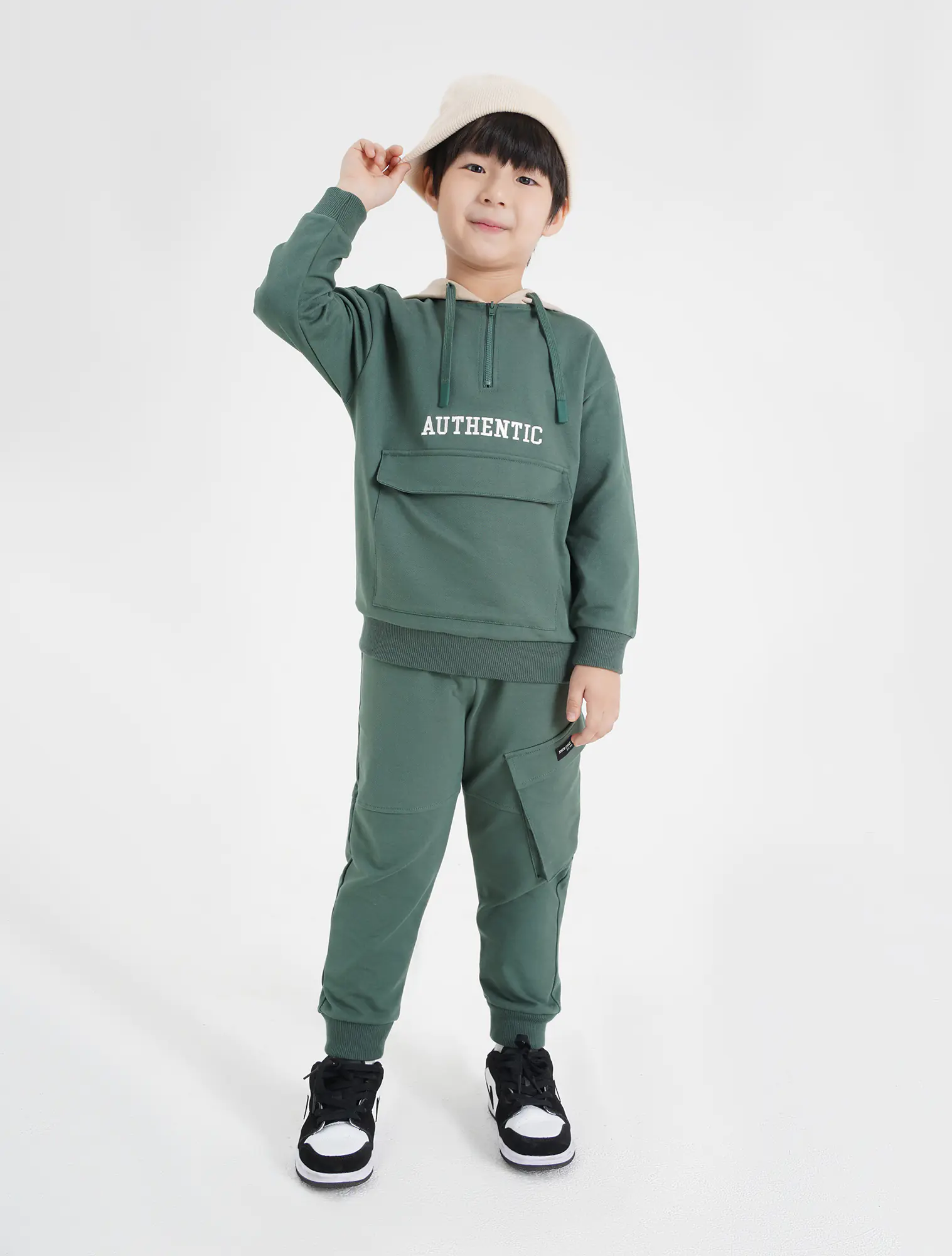 Quần nỉ bé trai túi ốp, chất liệu cotton pha khỏe khoắn phù hợp cho nhiều hoàn cảnh sử dụng,