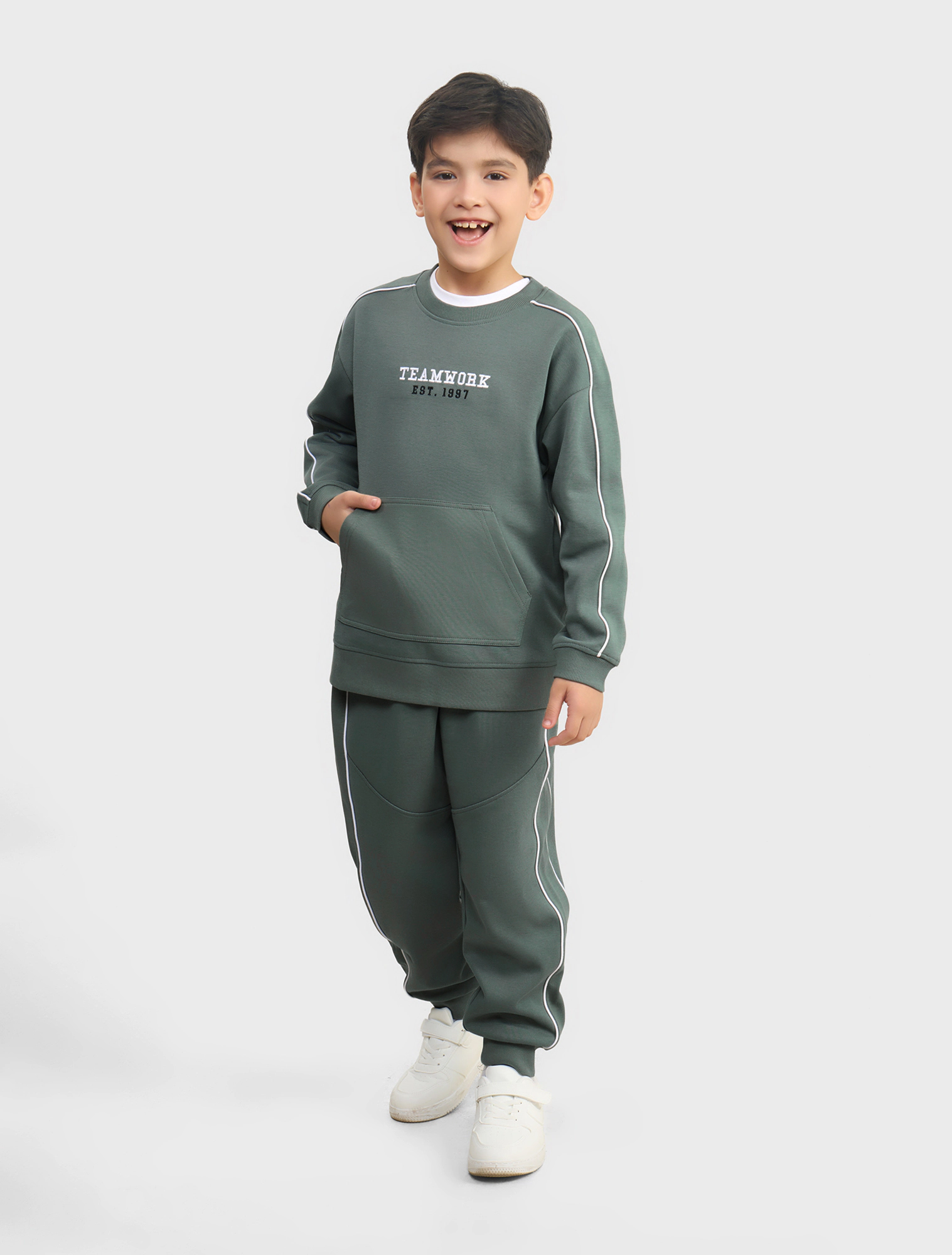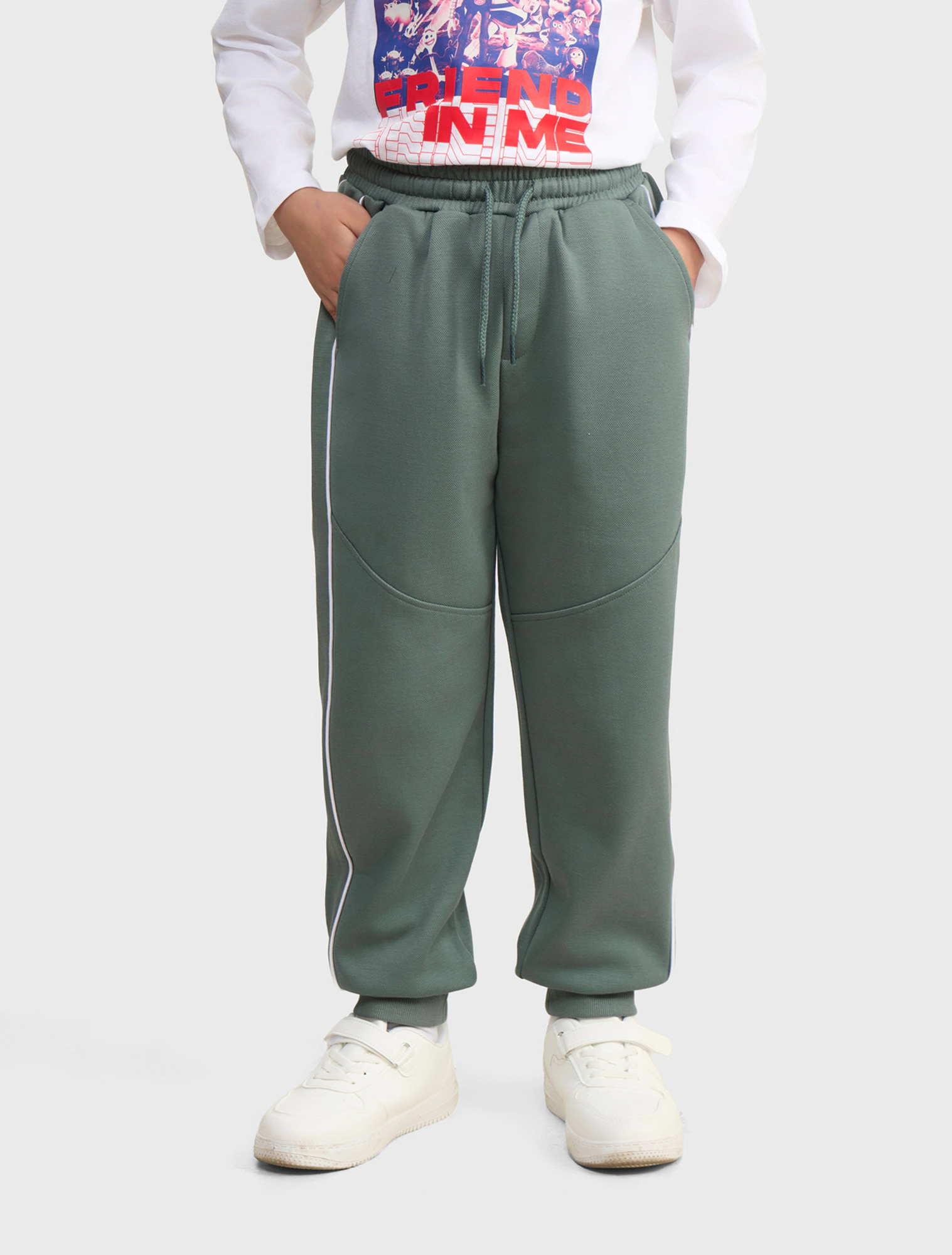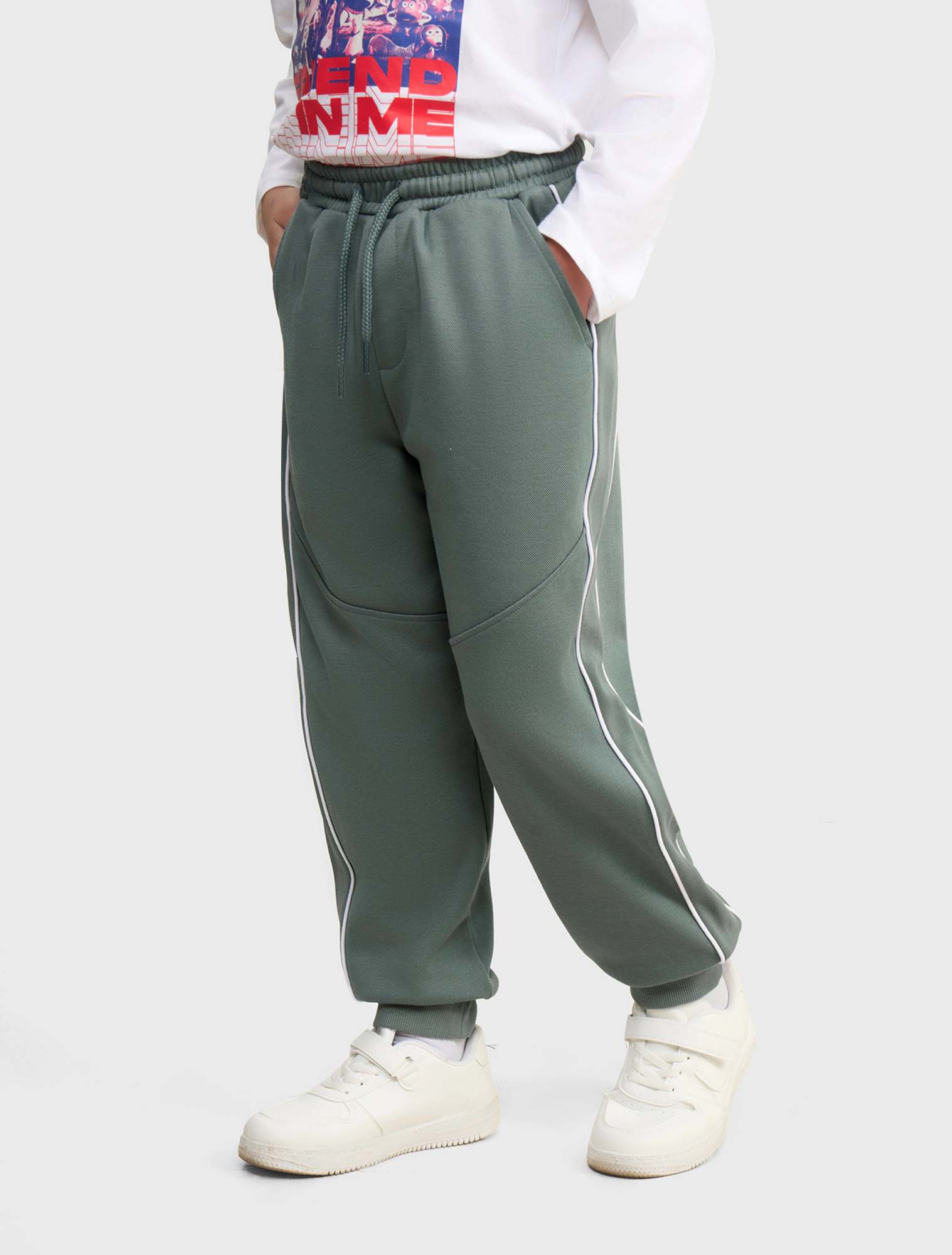 Quần nỉ bé trai chất liệu interlock, can phối gối tạo sự khỏe khoắn cho người mặc.