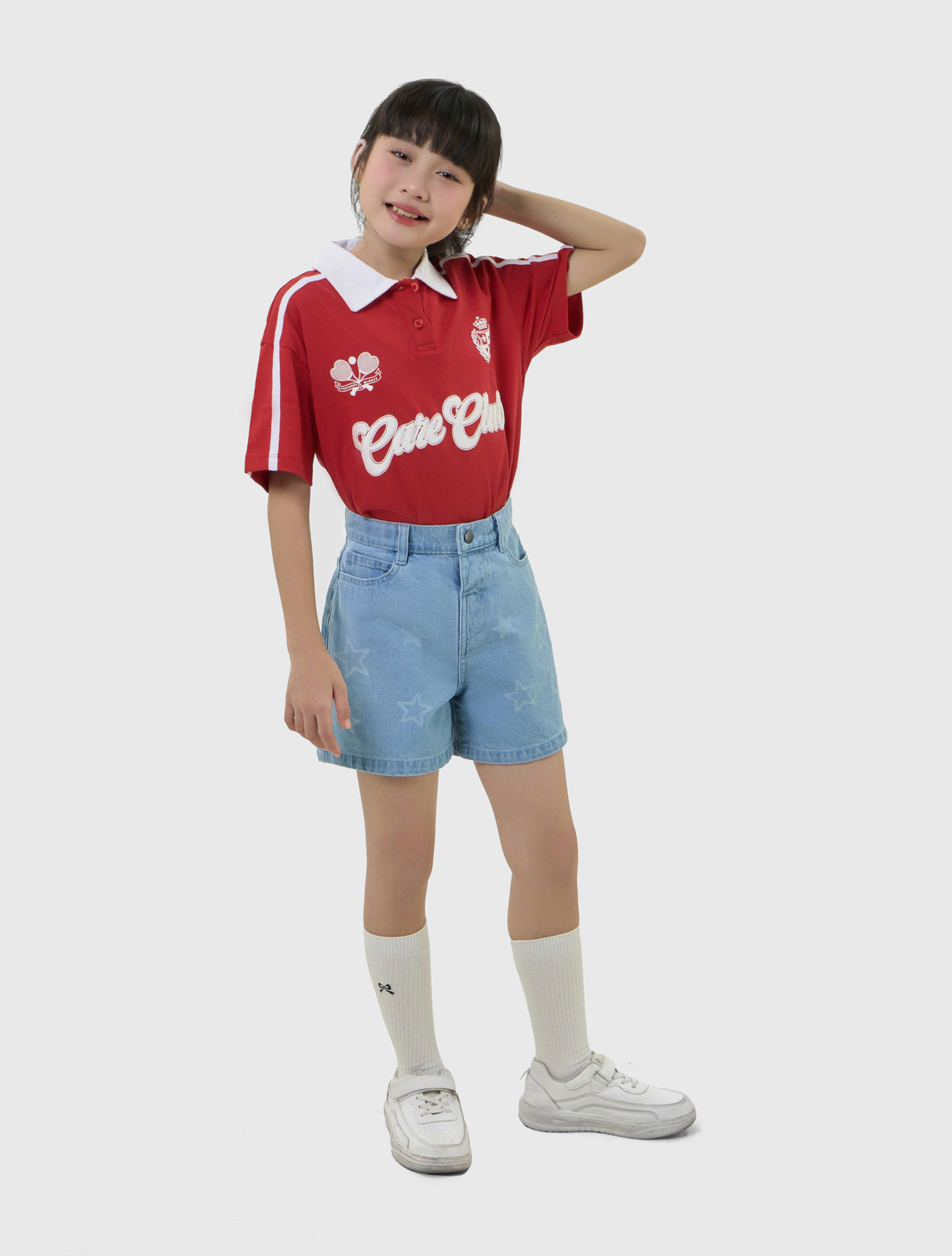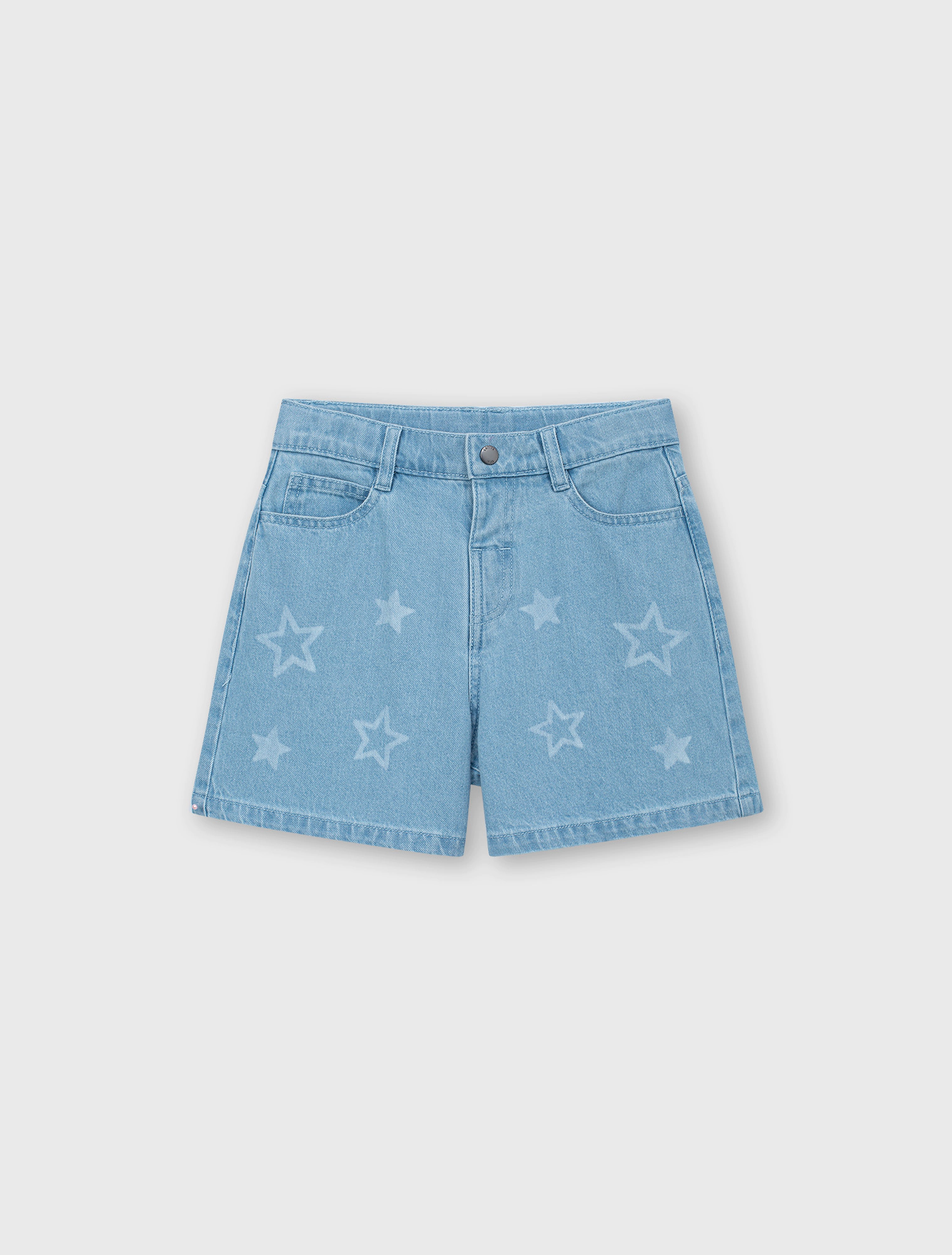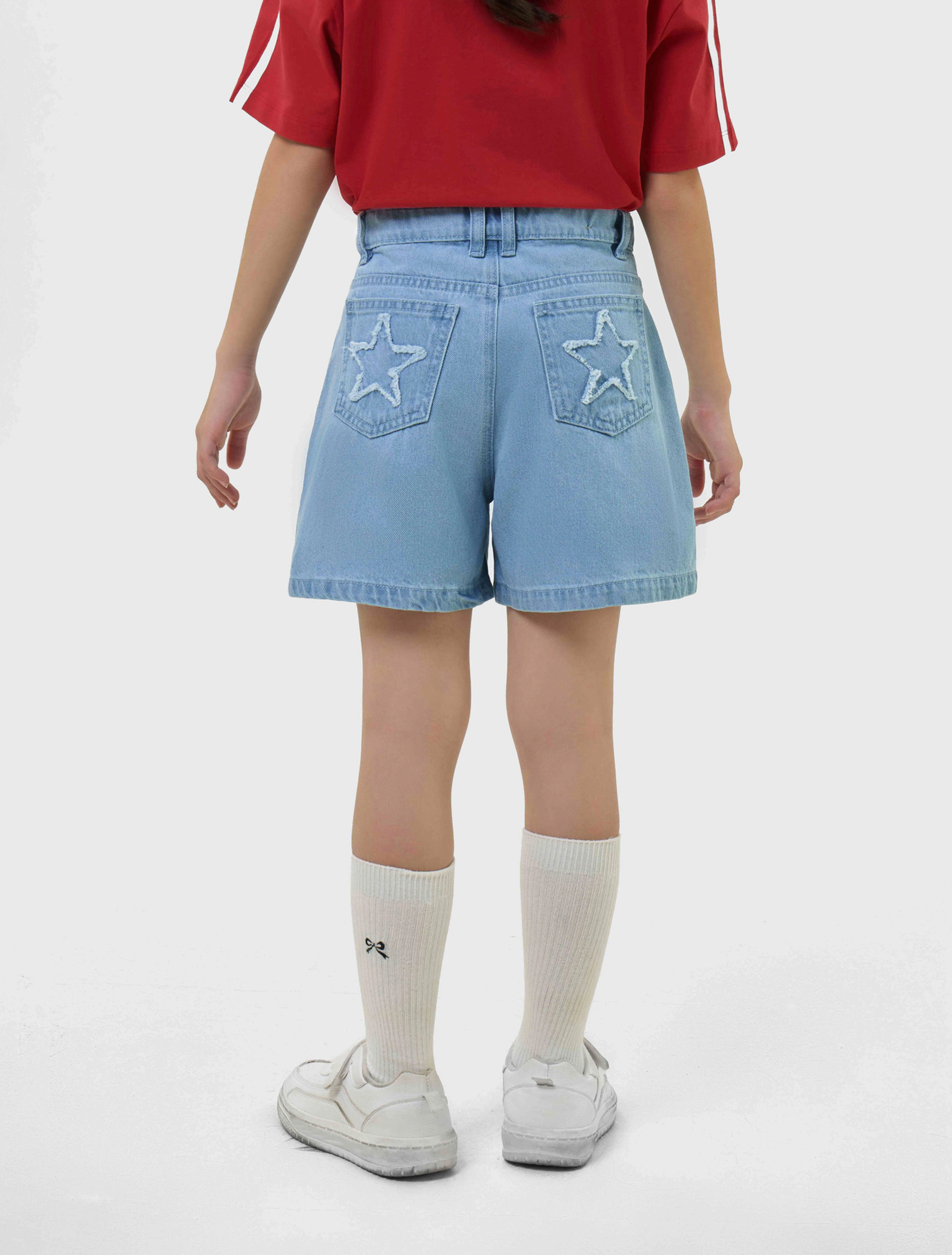 Quần soóc jeans bé gái, có hình in ngôi sao thân trước quần, dễ dàng kết hợp với các trang phục khác và dễ dàng vận động.