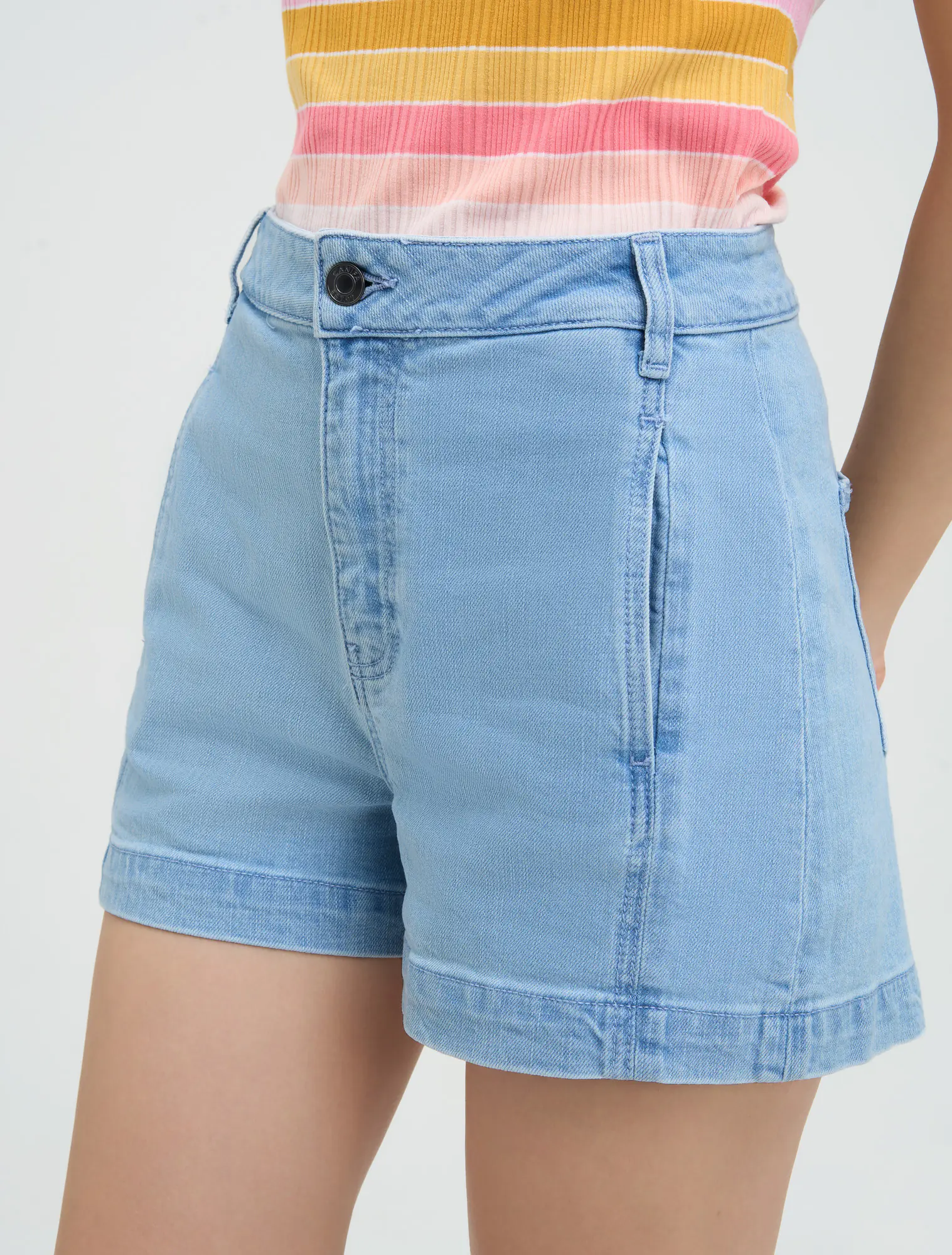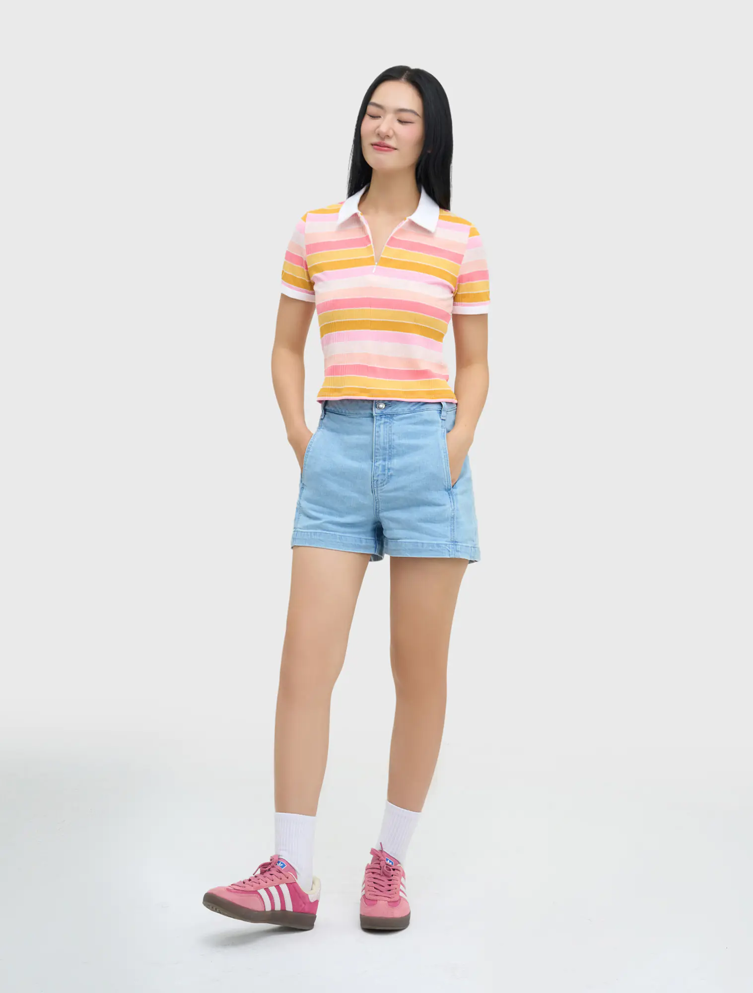 Quần soóc jeans nữ dáng regular có kẻ viền