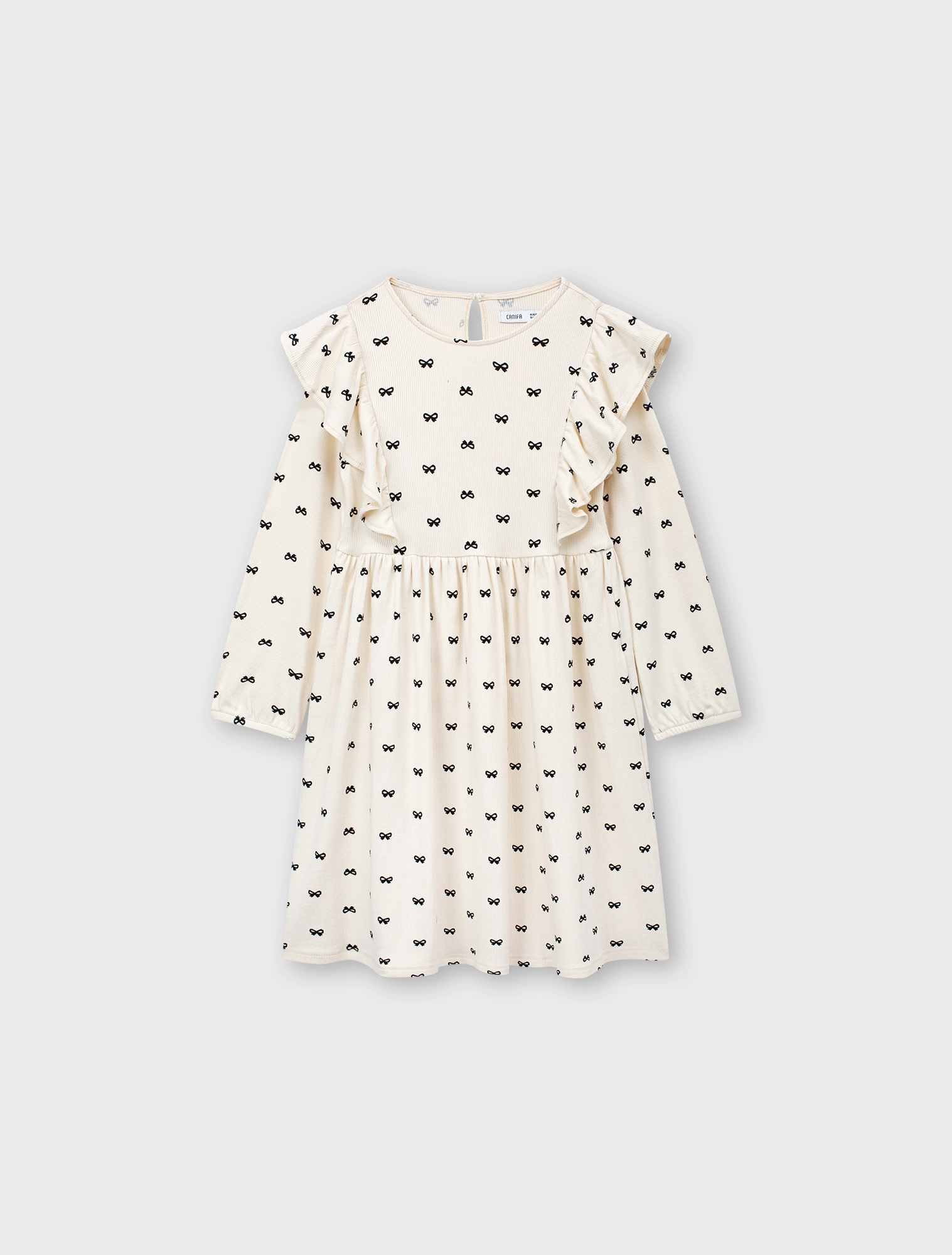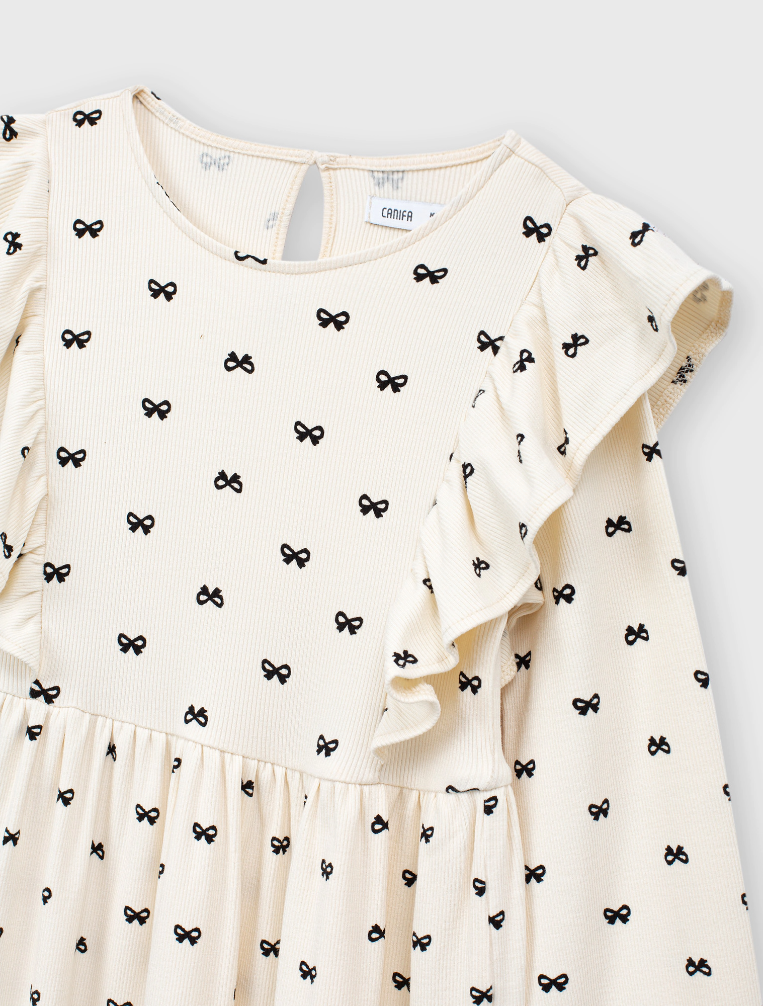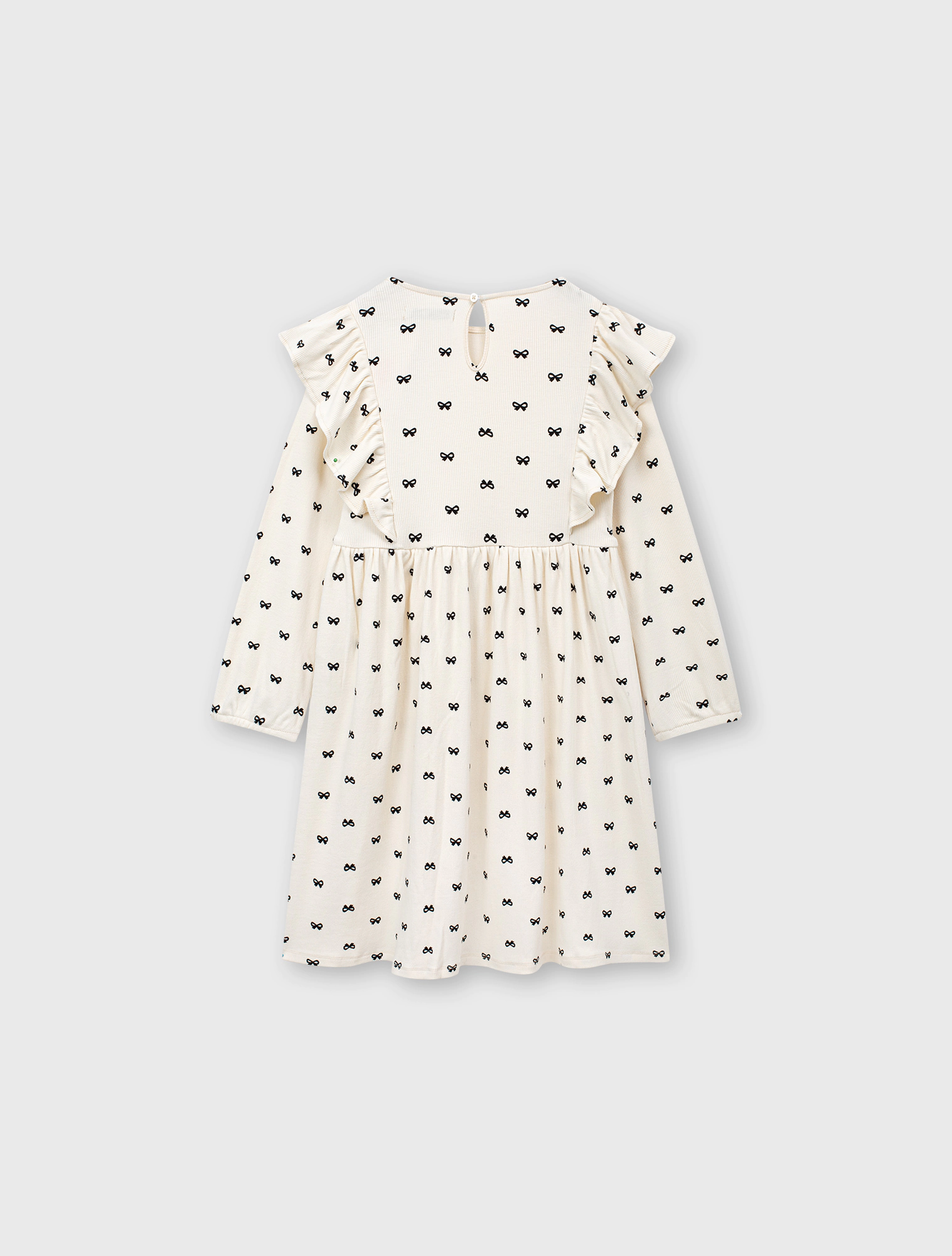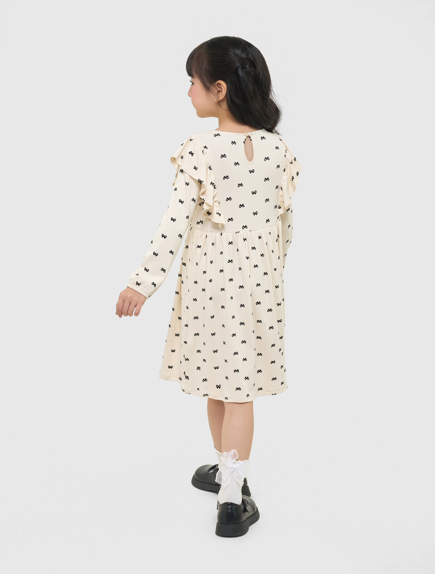 Váy liền bé gái, các chi tiết rúm bèo mang lại sự nữ tính cho bé gái.