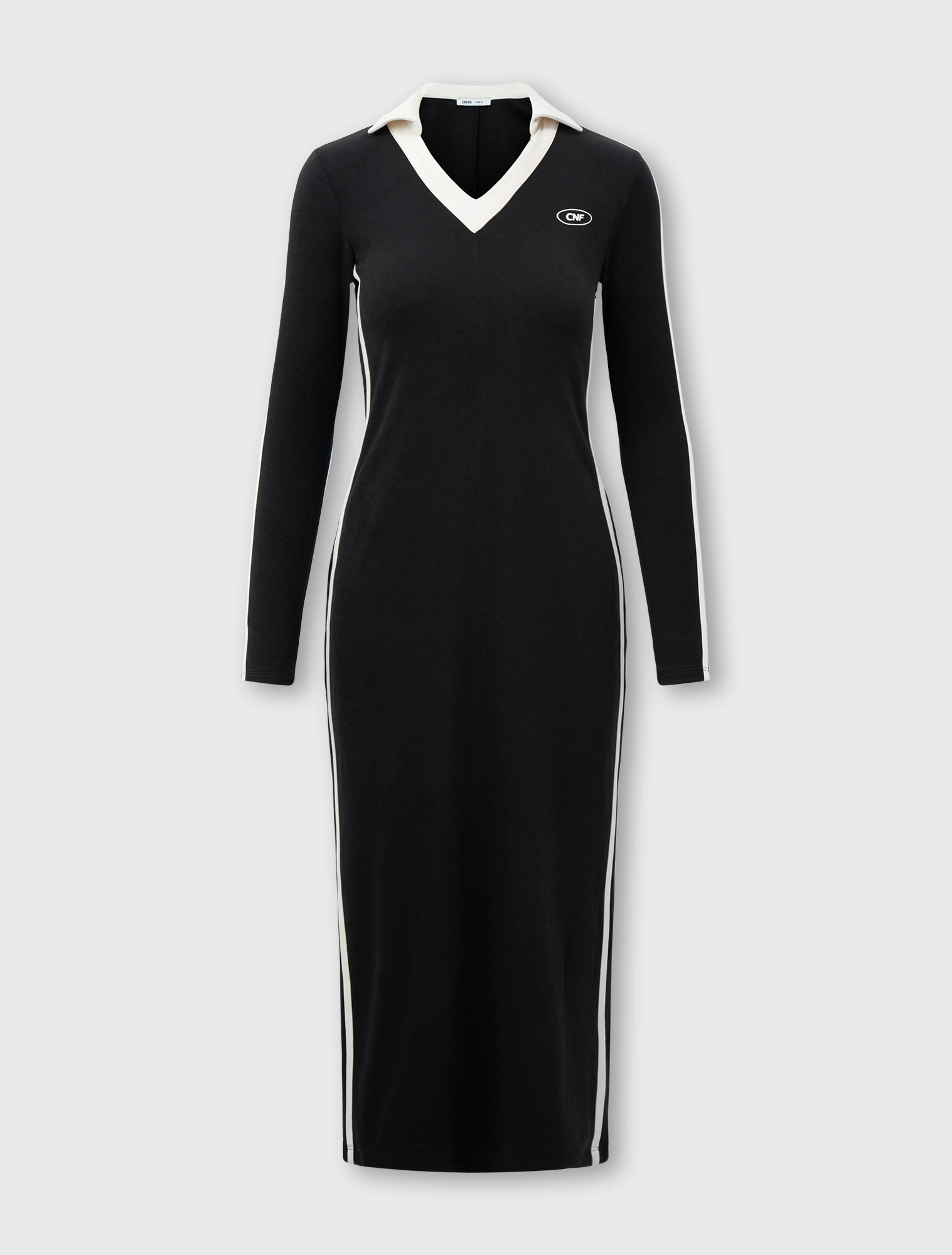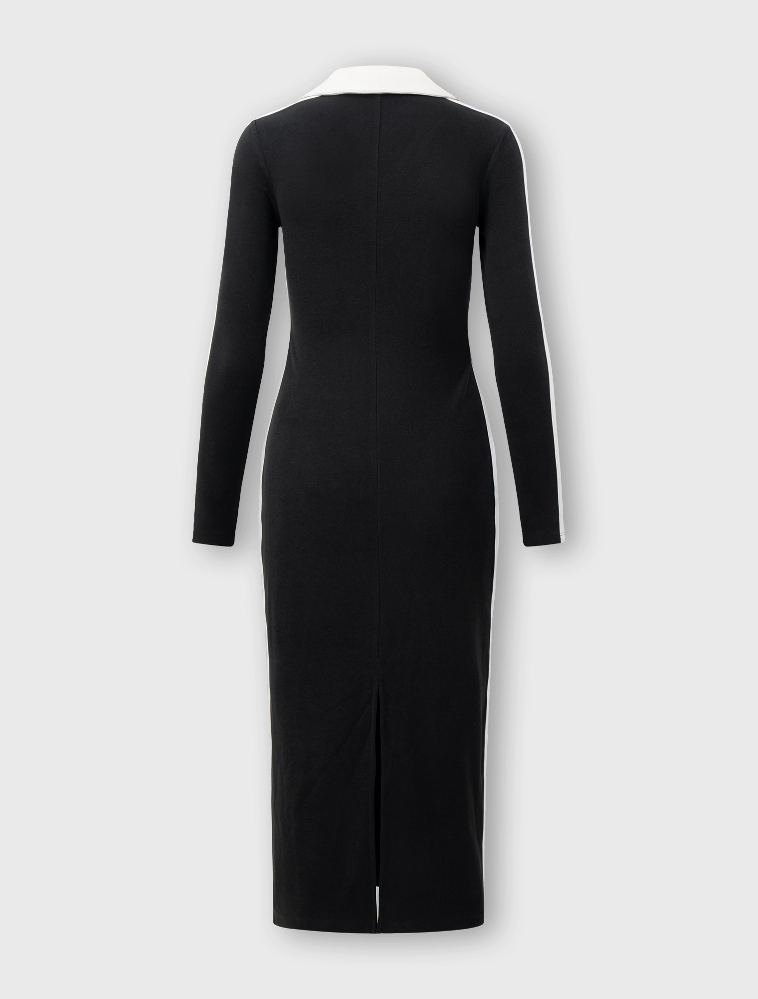 Váy liền nữ dáng ôm dài kiểu dáng thể thao với chi tiết phối màu dọc 2 bên sườn váy và cổ áo,
