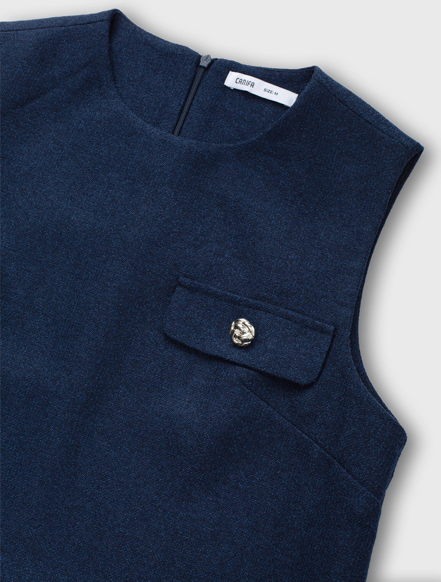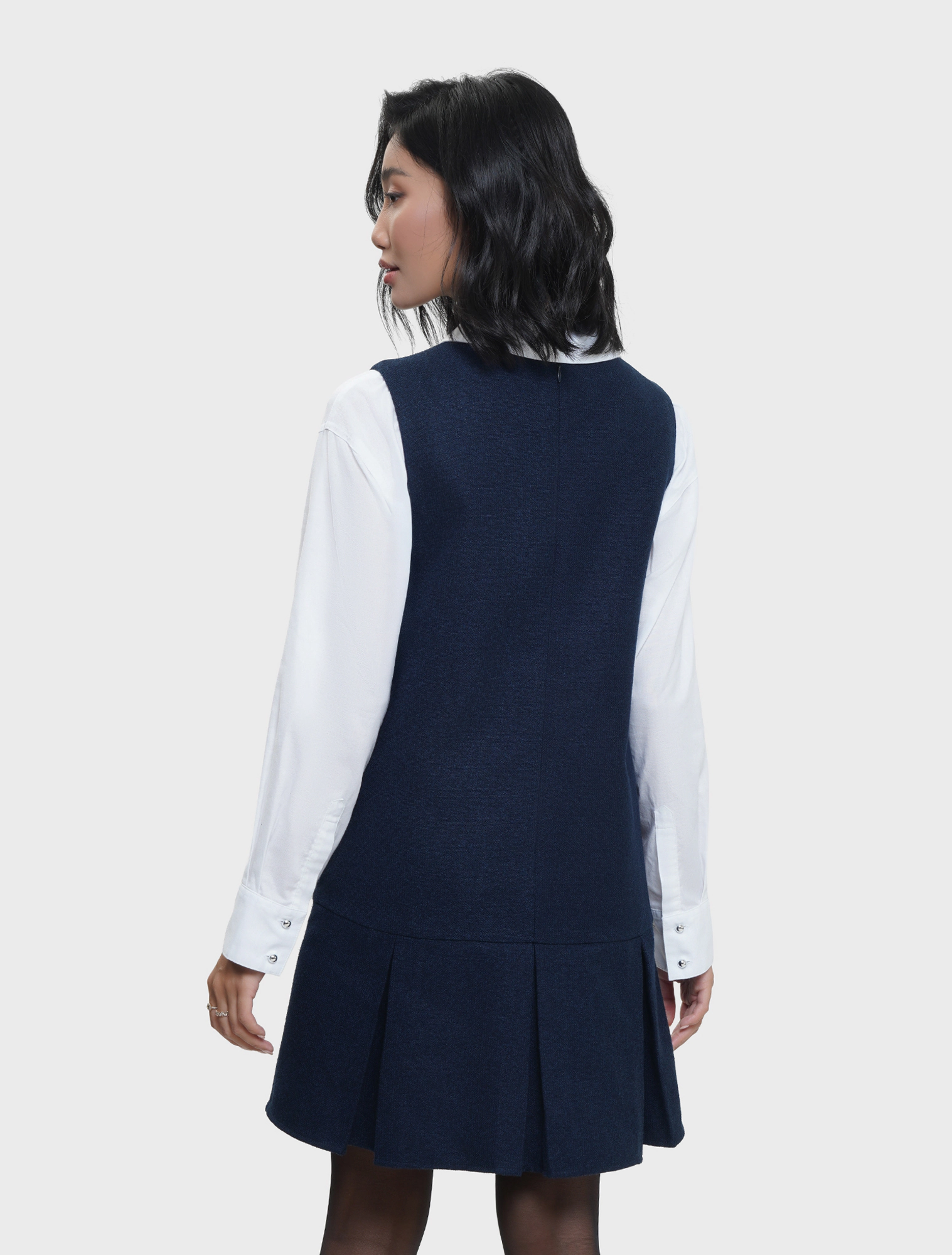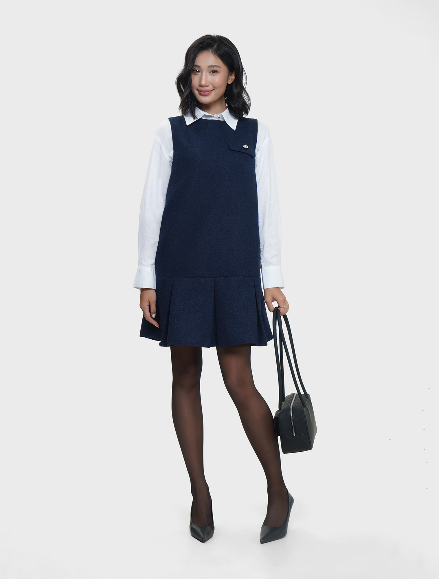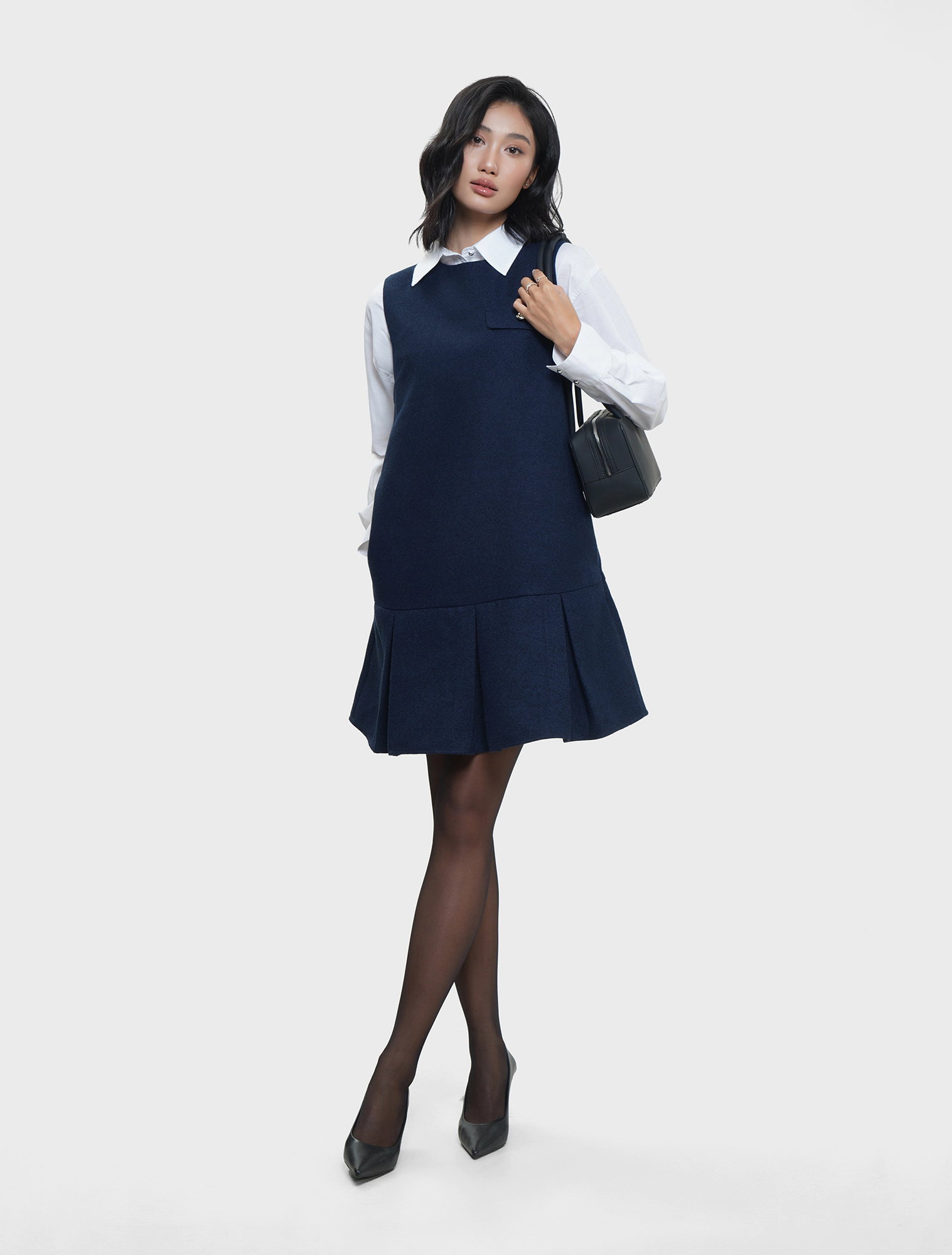 Váy liền nữ sát nách, dáng suông, chất liệu dạ ấm áp. Hoàn cảnh sử dụng linh hoạt công sở, dạo phố, lễ hội.