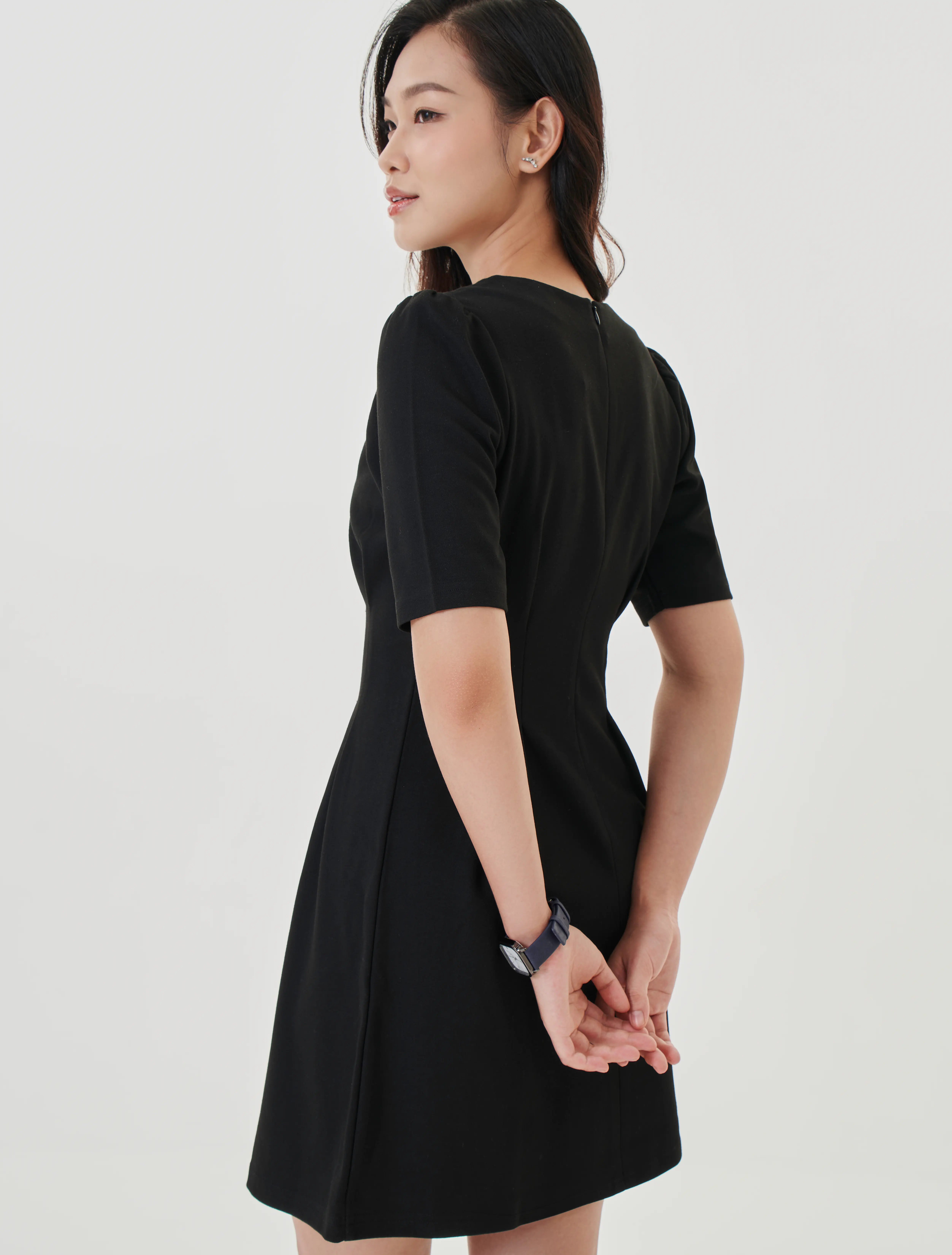 Chất liệu dệt kim dầy dặn, co dãn tốt tạo cảm giác thoải mái cho người mặc mà vẫn tôn dáng.